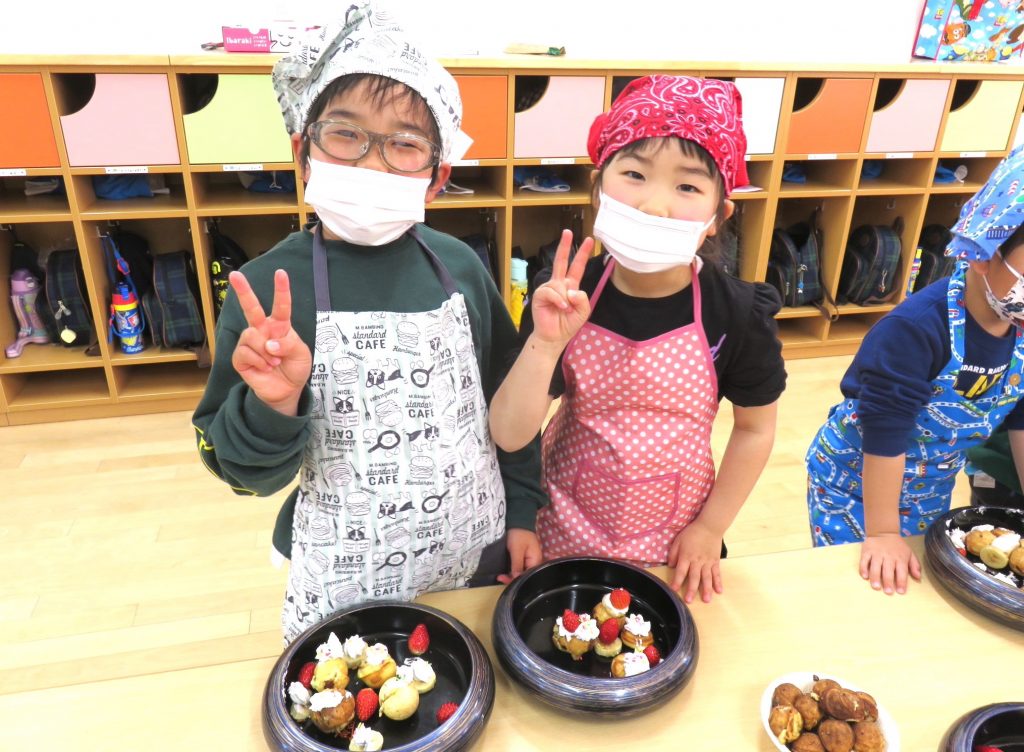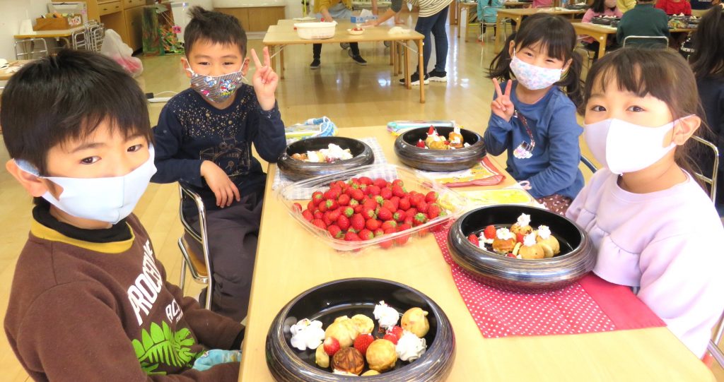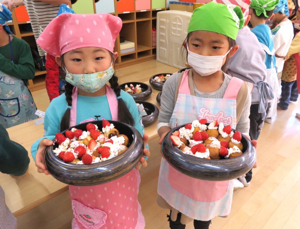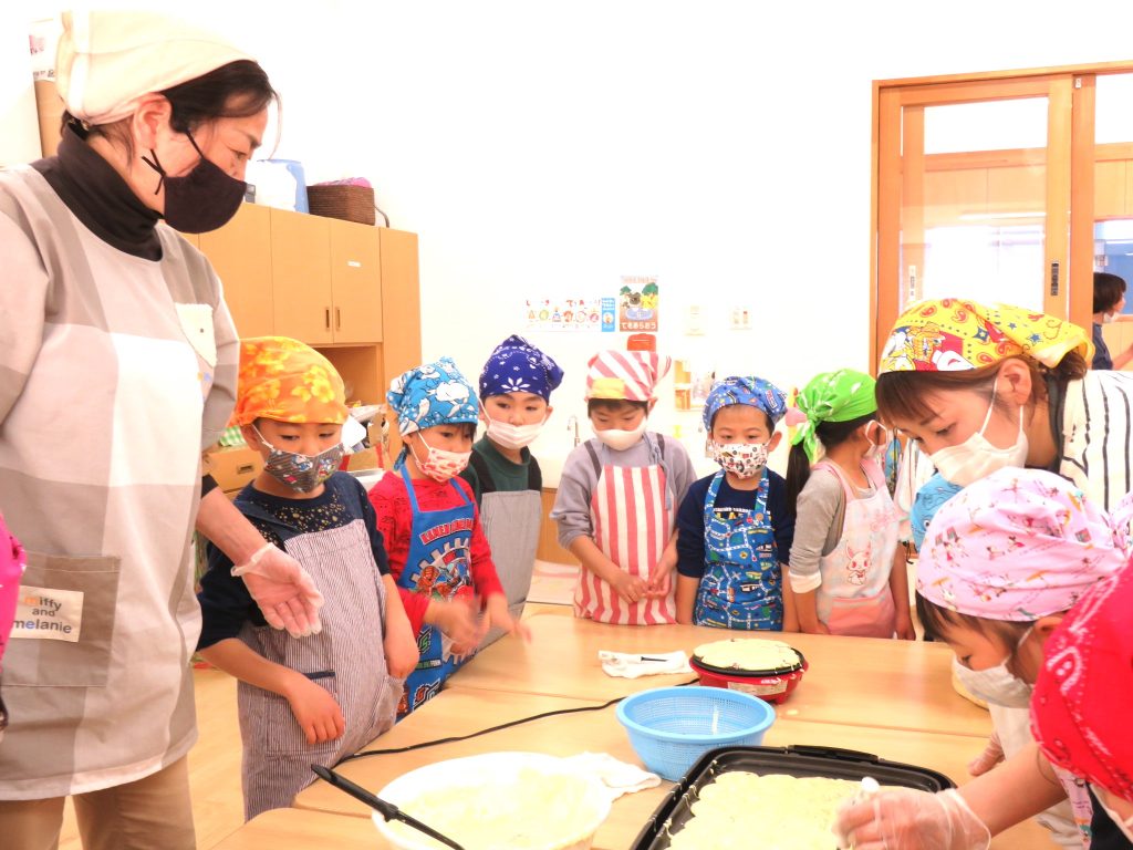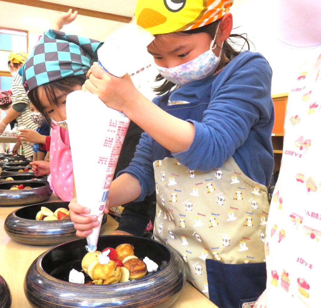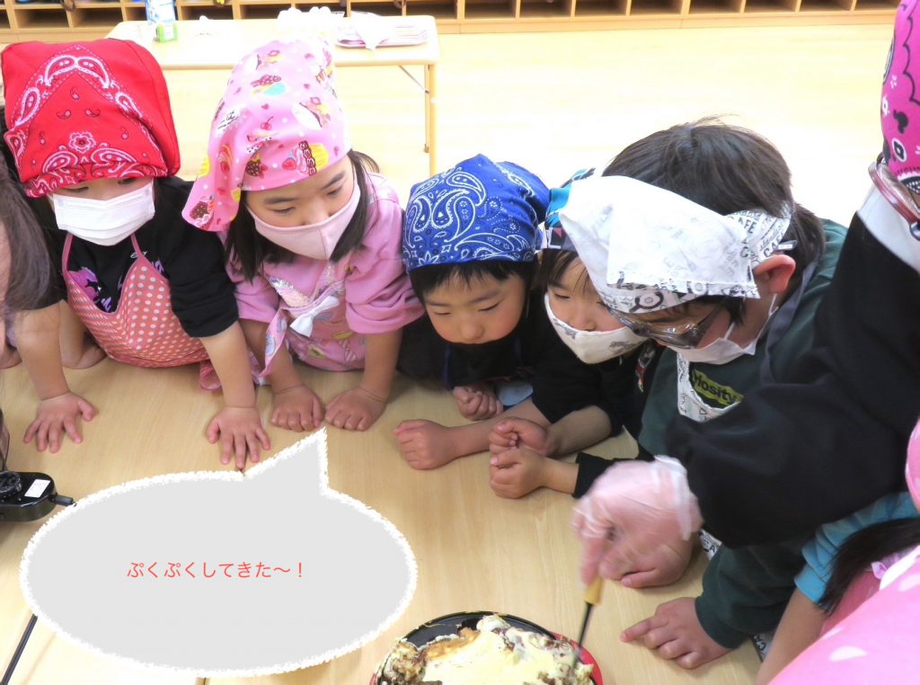 今日は、ぞう組さん最後の調理体験!見て体験して、いろいろな発見や工夫をしていました。「こうしたらどうかな?」「こうしたらうまくできた!」今回は失敗から成功を学んだようです。楽しくておいしくて、とても貴重な体験となりました!是非、おうちでもお子様と一緒に作ってみてください♪