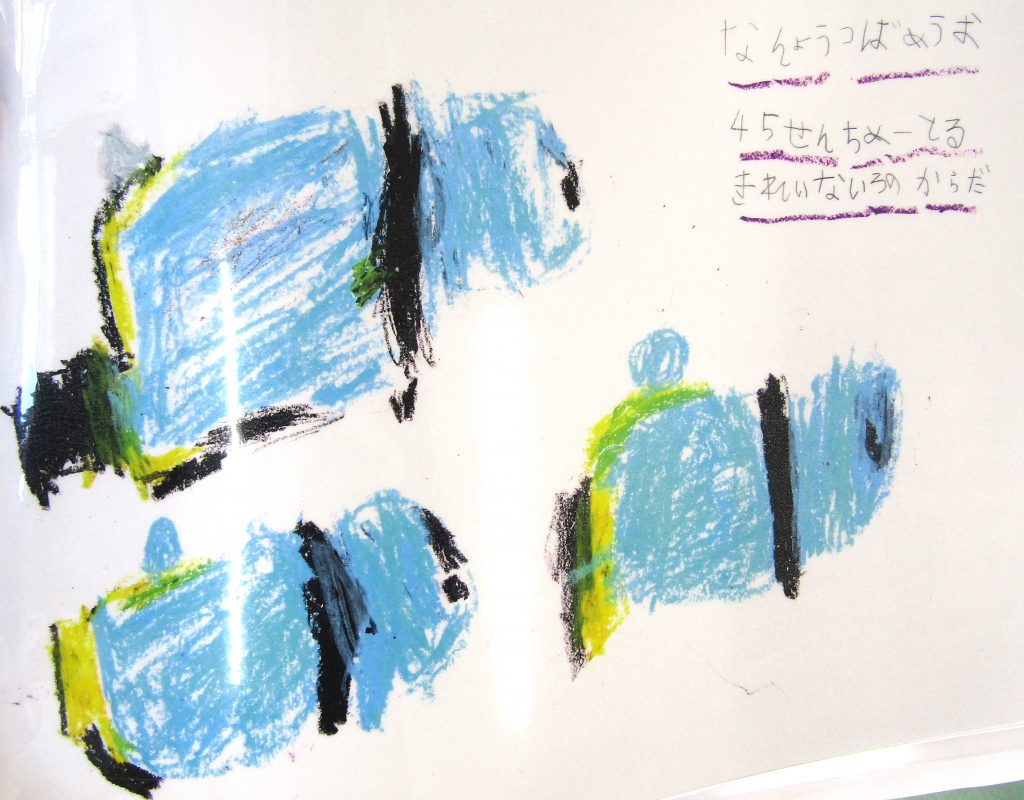 ぞう組さんは、お別れ遠足で3月5日(金)大洗水族館に行ってきました!事前学習の成果もあり遠足ではとても熱心に魚の種類・色・形など確認していました!戻ってきてからは、楽しかった思い出と一緒に見てきた魚たちを図鑑に残しました。この他にもここには載せきれなかったお魚たちもいますが、ぞう組さん力作のこの図鑑はこども園に残していってくれたので、みんなで見て楽しく勉強したいとおもいます。