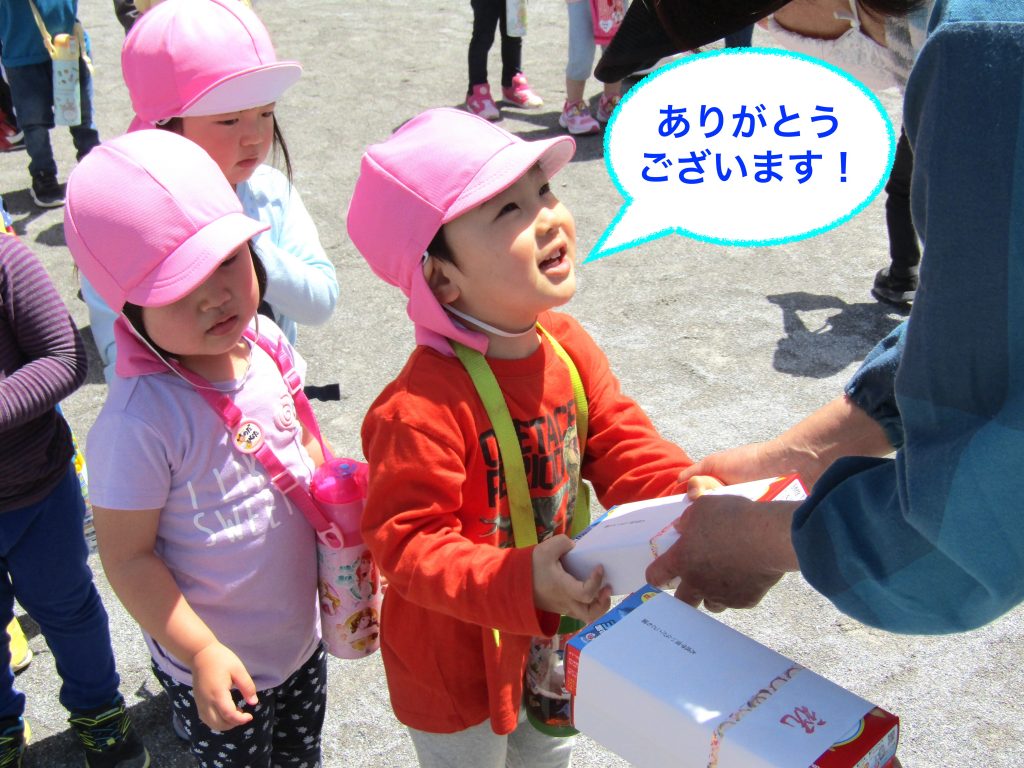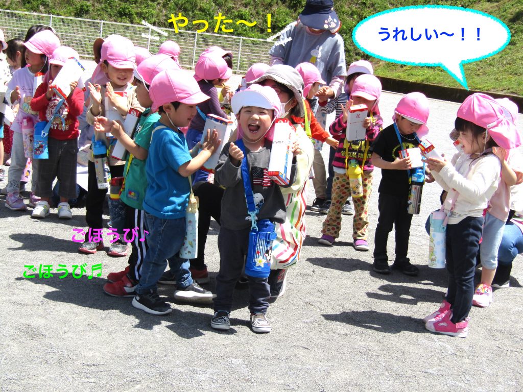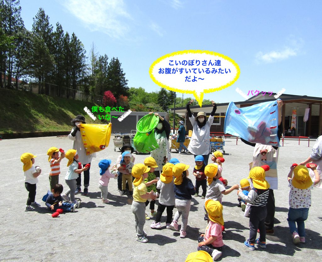 こどもまつり パート2 2021 5/07 ニュース みんな元気に大きくな〜れ! 園長先生からこどもの日の由来を聞いたらいよいよこいのぼりくぐりスタート! みんな自分の番が待ち遠しそう♬ 出口だ〜♬もう一回くぐりたいな〜! この後、みんな楽しくて何回もくぐりぬけていました! こいのぼりも喜んでいます♪ こいのぼりくぐりの後は、こいのぼり玉入れ〜! こいのぼりさんお腹ぺこぺこの様です!たくさんお口に入れてあげてね♪ 以上児さんたちは、いなだっこリレーです! 最初はフープくぐり!フープに向かってダッシュ! 迫力のある走りに応援にも力が入ります! フープをくぐりながら次は何かな〜?確認してます(笑) 走りながらジャンプにチャレンジ! ぞう組さんは、スピードにのったままジャンプ! 最後の障害物!滑り台(^○^) ゴールが見えてきましたよ〜! みんなニコニコでゴール! 楽しかった玉入れとリレーの後は〜♡ きちんとお礼も言えました! 頑張った後のごほうびうれしいね(^o^) 青空のもと楽しくこどもまつりに参加しました!大空をのびのびと泳ぐこいのぼりの様にみんな元気に大きくな〜れ!! ニュース URLをコピーしました! こどもまつり パート1 カマキリの赤ちゃん コメント コメントする コメントをキャンセルコメント ※ 名前 ※ メール ※ サイト 次回のコメントで使用するためブラウザーに自分の名前、メールアドレス、サイトを保存する。 上に表示された文字を入力してください。 Δ