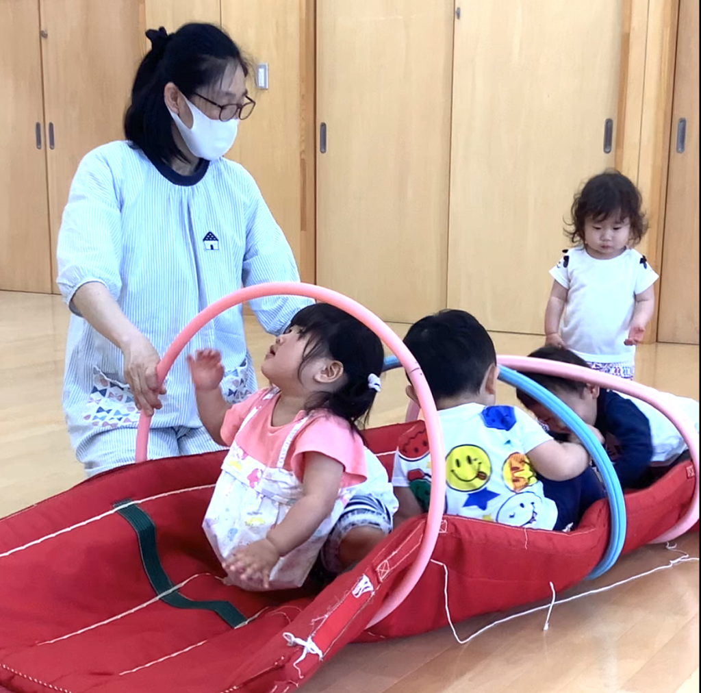 その頃いなだこども園では、りす組さんとひよこ組さんが、いなだっこ遊園地で遊んでいました。ただいまいなだこども園内貸切中です!
