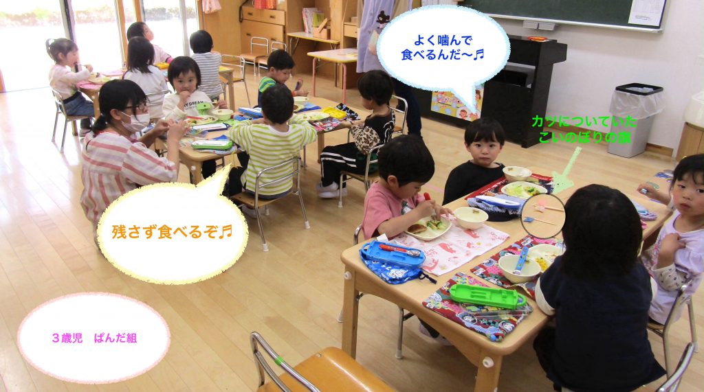 調理員さんに感謝♬ 2021 5/31 ニュース 毎日おいしい給食を作ってくれるだけでなく、こんなに手の込んだ工夫もしてくれます♬ 今日は、5月生まれのお誕生会があり、おやつにこんなにかわいいケーキを作ってくれました♬ カエルの顔をした、ほうれん草のケーキ♫年齢に応じて作ってくれました! 小さいお友だちは、クリームの代わりにお星さまがのっていましたよ♫ みんなおやつを見た途端「わ〜!かわいい♬」と大歓声でした! おいしくて、楽しくて栄養満点♫ 5月の子どもの日には、お給食のとんかつに、こいのぼりの旗をつけてくれました! 0歳児さんも頑張って自分で食べます(^ ^) ほっぺたの中いっぱいにおいしいが広がります♪(๑ᴖ◡ᴖ๑)♪ 大好きなお友だちに大好きなお給食、おいしさも増します♬ みんなで食べるとお野菜だって頑張れちゃいます(笑) 給食さんいつもあたたかくておいしい給食をありがとうございます)^o^( ニュース URLをコピーしました! 稲田小学校 田植え体験見学 春の遠足〜笠間市民体育館へ〜 コメント コメントする コメントをキャンセルコメント ※ 名前 ※ メール ※ サイト 次回のコメントで使用するためブラウザーに自分の名前、メールアドレス、サイトを保存する。 上に表示された文字を入力してください。 Δ