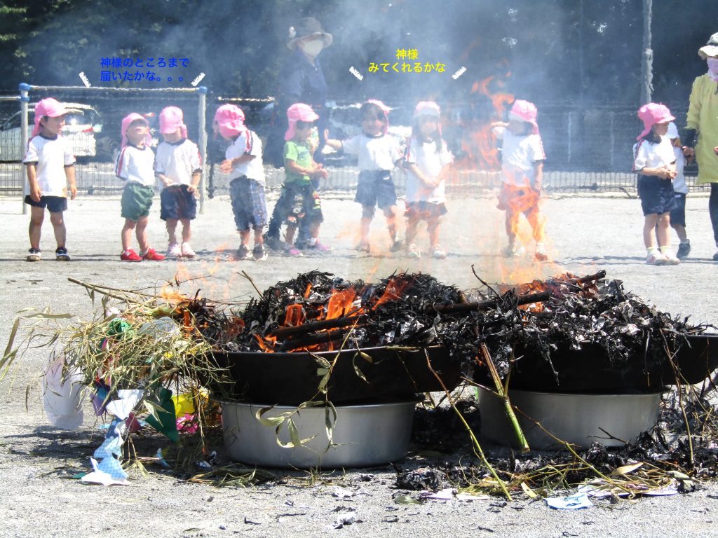 七夕お焚き上げ 2021 7/26 ニュース みんなの願い事、天まで届け! R3.7.12 園長先生からお焚(た)き上げについてのお話を聞きます(^○^) 点火〜!!子どもたちは口々に「わ〜!大きな火!!」「上に昇っていくね!」と話していました。 みんなのお願いがしっかりと天に届きますように。。お祈りします しっかり届きましたね! 今日は、お焚き上げでみんなの短冊やお飾りなどを感謝の気持ちを込めて燃やしました。神様が宿った炎で燃やしてお清めをし今年もたくさんのお願いが天まで届けられました!みんなの願いがかないますように。。。 ニュース URLをコピーしました! AETの先生がやってきた! 大成学園いなだこども園アート・ギャラリー コメント コメントする コメントをキャンセルコメント ※ 名前 ※ メール ※ サイト 次回のコメントで使用するためブラウザーに自分の名前、メールアドレス、サイトを保存する。 上に表示された文字を入力してください。 Δ