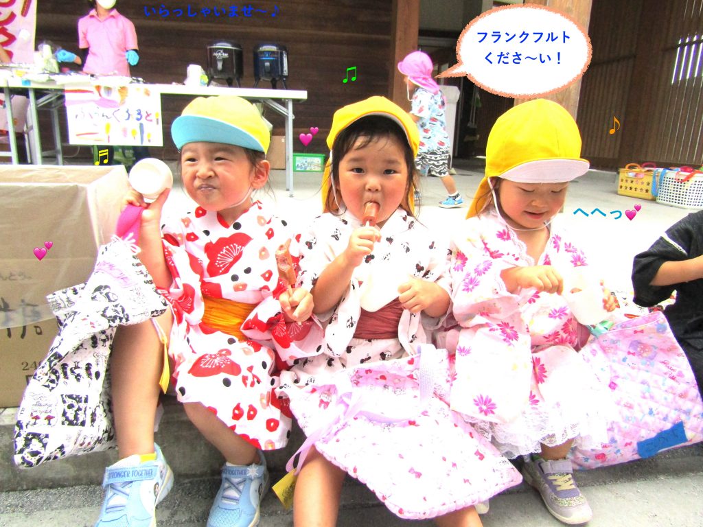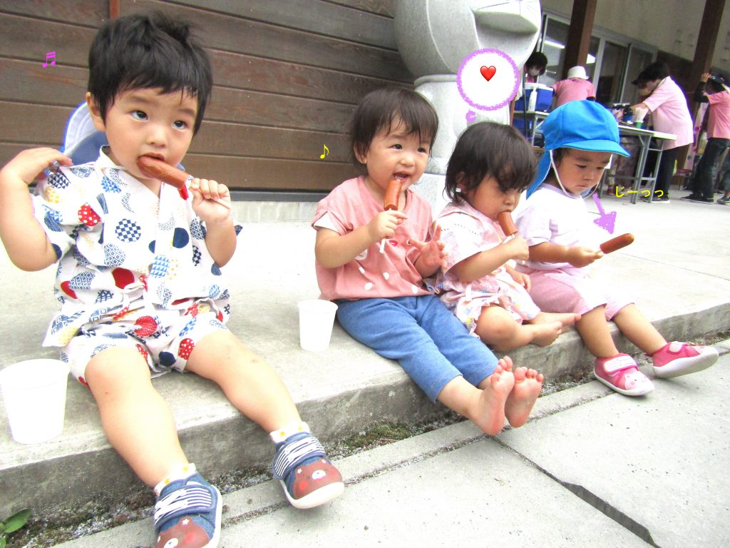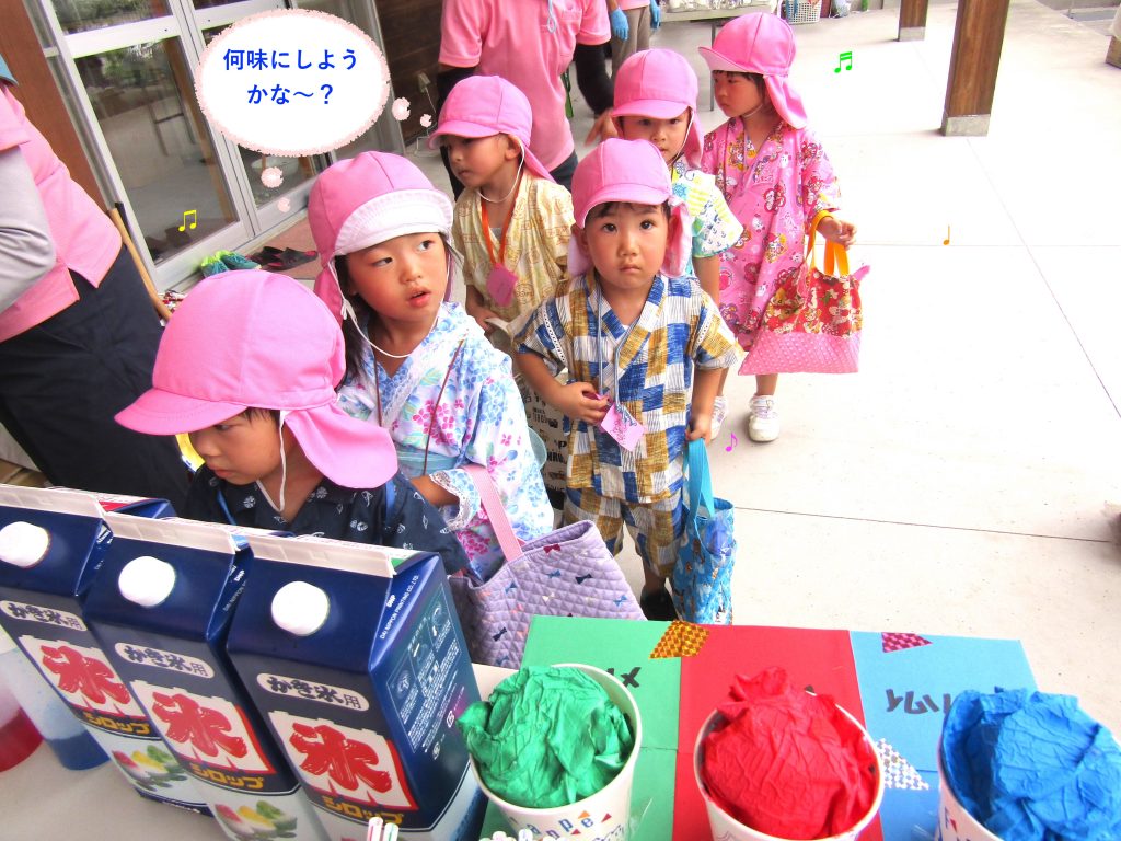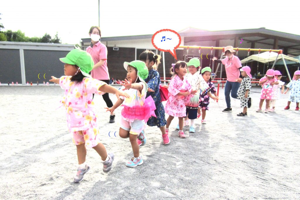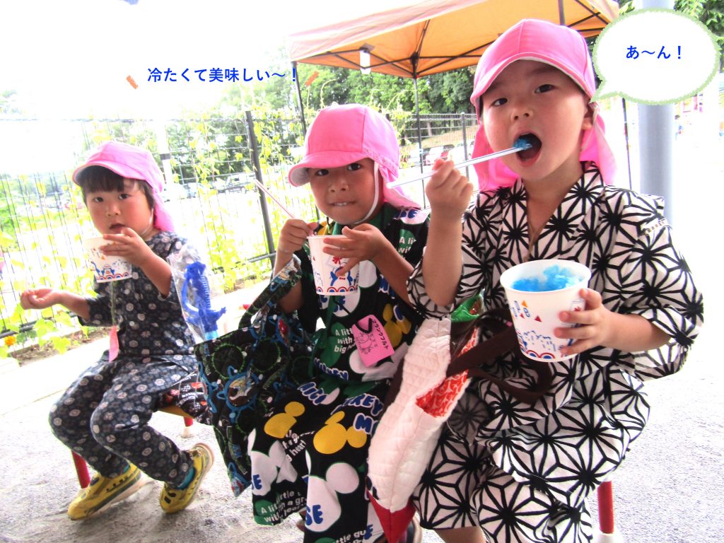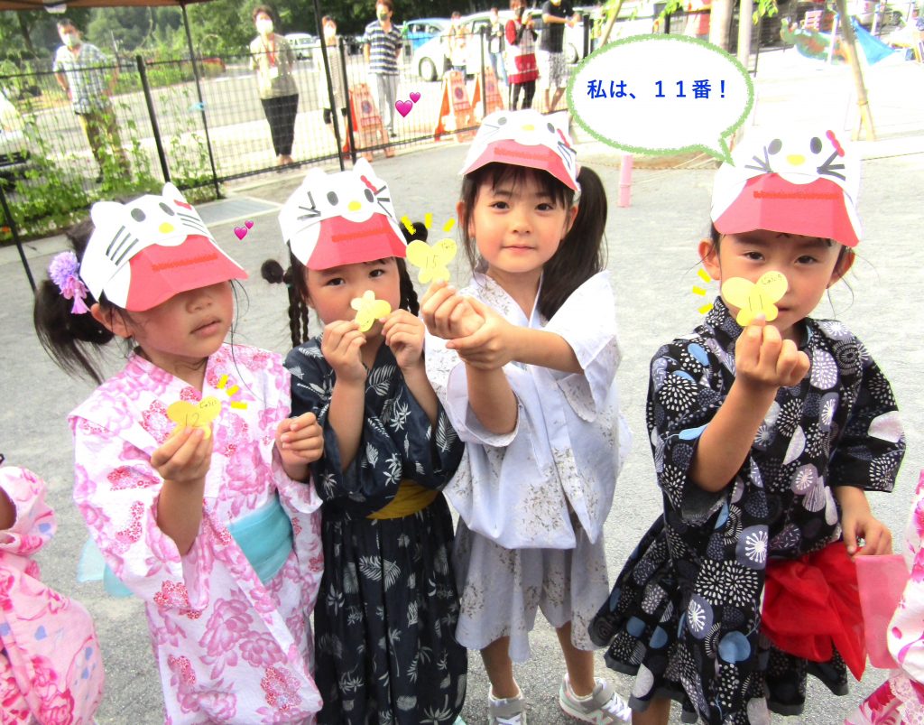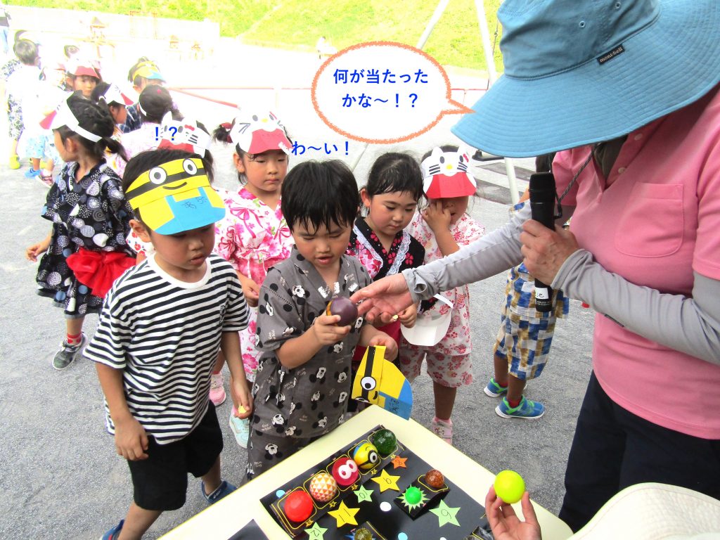 そんな中、いなだこども園では、感染対策をしっかり行いながら、子どもたちに夏祭りを楽しんでもらえるよう園児のみの参加とし、クラス役員さんにご協力いただき無事開催することができました!