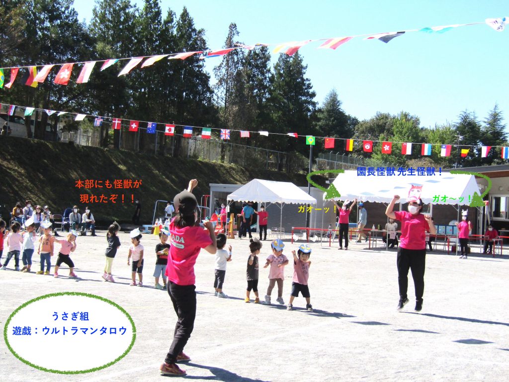 うさぎ組(遊戯)いなだこども園にウルトラマンタロウがやってきました!本部に現れた怪獣をやっつけて! ぱんだ・こあら組(遊戯)アンダー・ザ・シーの曲に合わせてノリノリで踊ってくれました♫