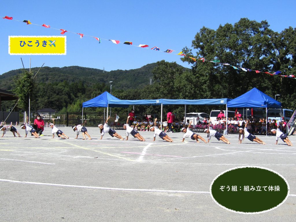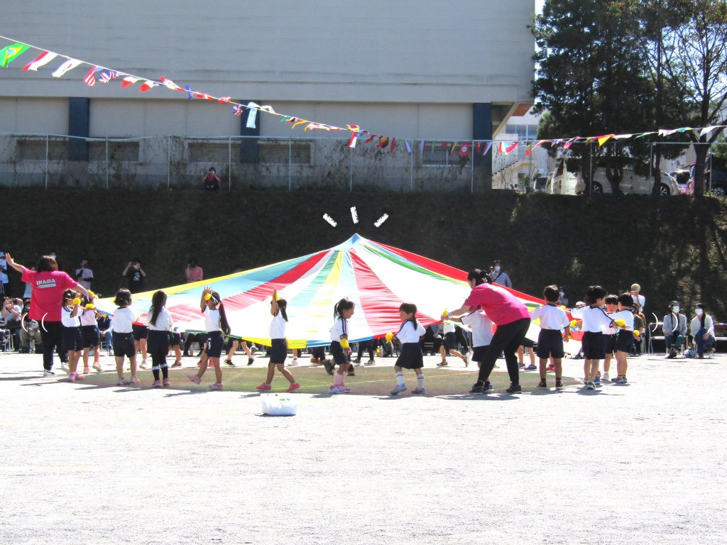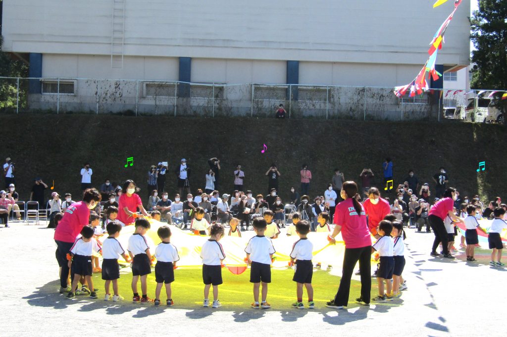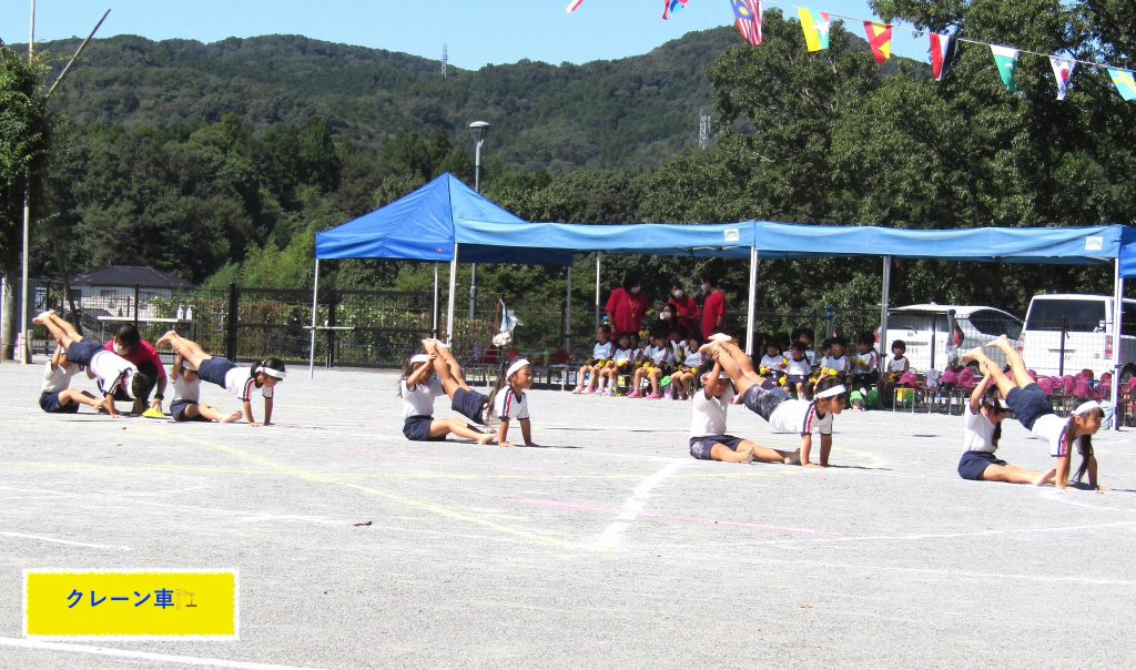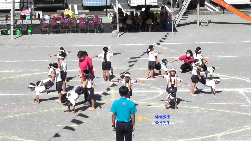 ぞう組 組み立て体操!コロナ禍により、なかなか打ち合わせができない中、体育教室の染谷先生と担任の先生が協力し練習に取り組みました!今日は、園児達の毎日の頑張りが全て発揮できました!