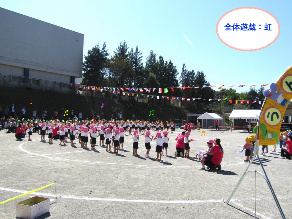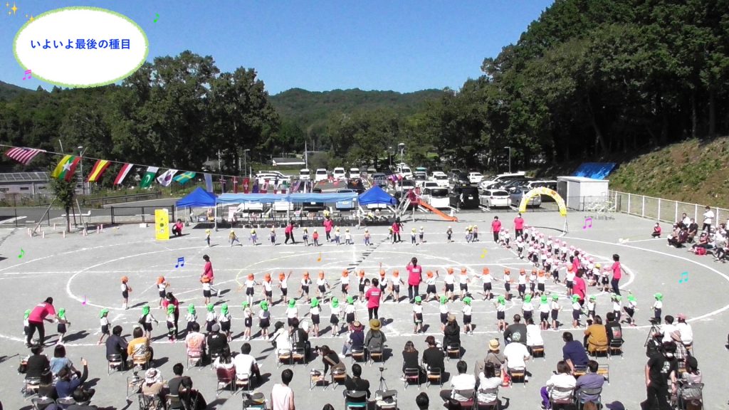 いよいよ今年度最後の種目♪全体遊戯〜虹〜最後はゆったりとした曲で運動会を閉めました。