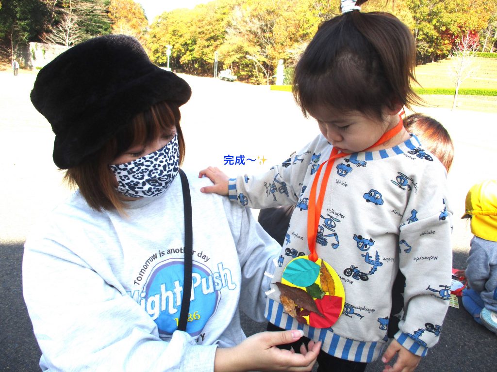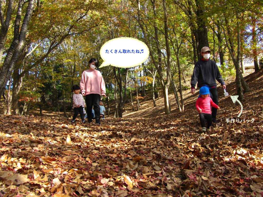 りす組さんはお家の人と一緒に手作りバックを作って落ち葉集め😊