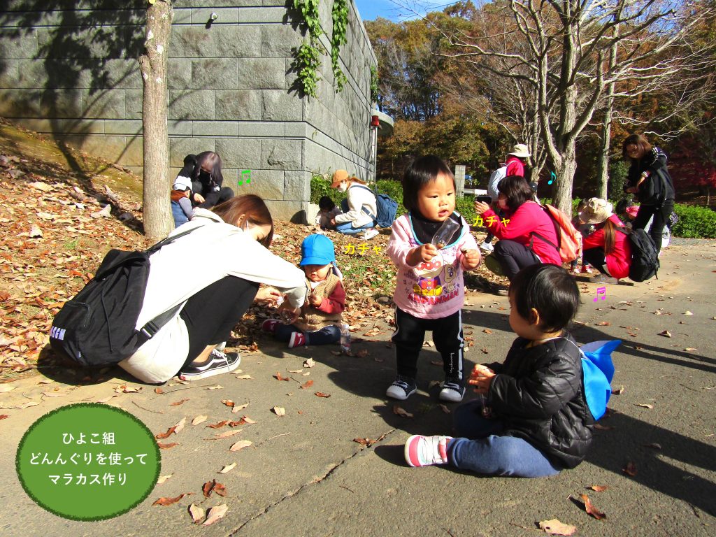 ひよこ組さんはどんぐりを拾ってマラカス作り♬