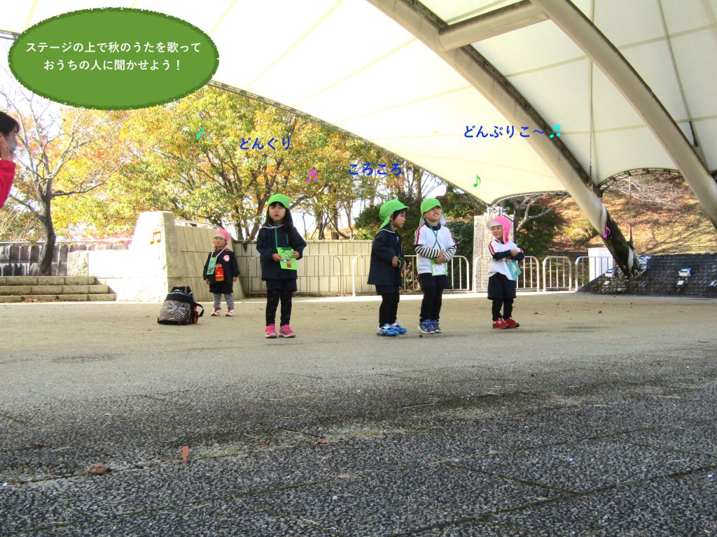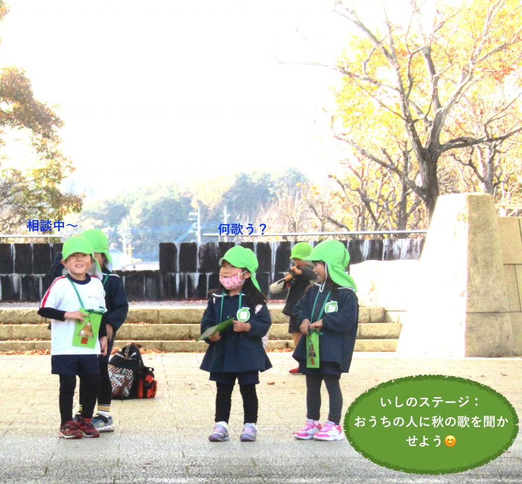 3つ目のミッションは、野外コンサート広場でおうちの人に秋の歌を聞かせよう♪