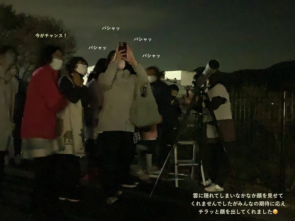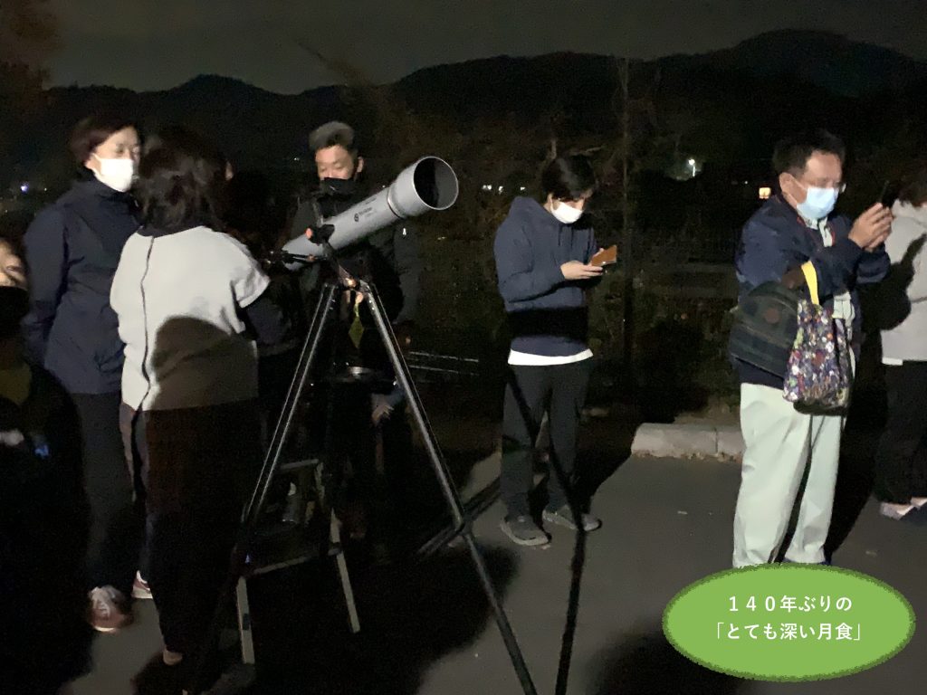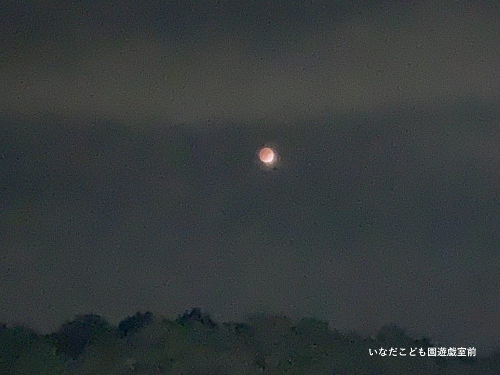 今回の月食は、月が地球から遠い位置にある時に起こるため、月の動きが遅く、地球の影の中をゆっくりと進んでいくので、月食の時間が長くなります。また、月が大変深く欠けるものの、皆既食にはならず日本から見られるという大変珍しい要因が重なった月食でした。なんと食の最大時には月の直径の97.8%が地球の影に入るたいへん深い月食が見られました🌕今回は、親子遠足もあったので、遊戯室前に天体望遠鏡を置き天体観測は自由参加としました😁次回は、第4回理科教室にてぞう組さんが天体観測を行う予定です😀1等星が見られるといいですね⭐️