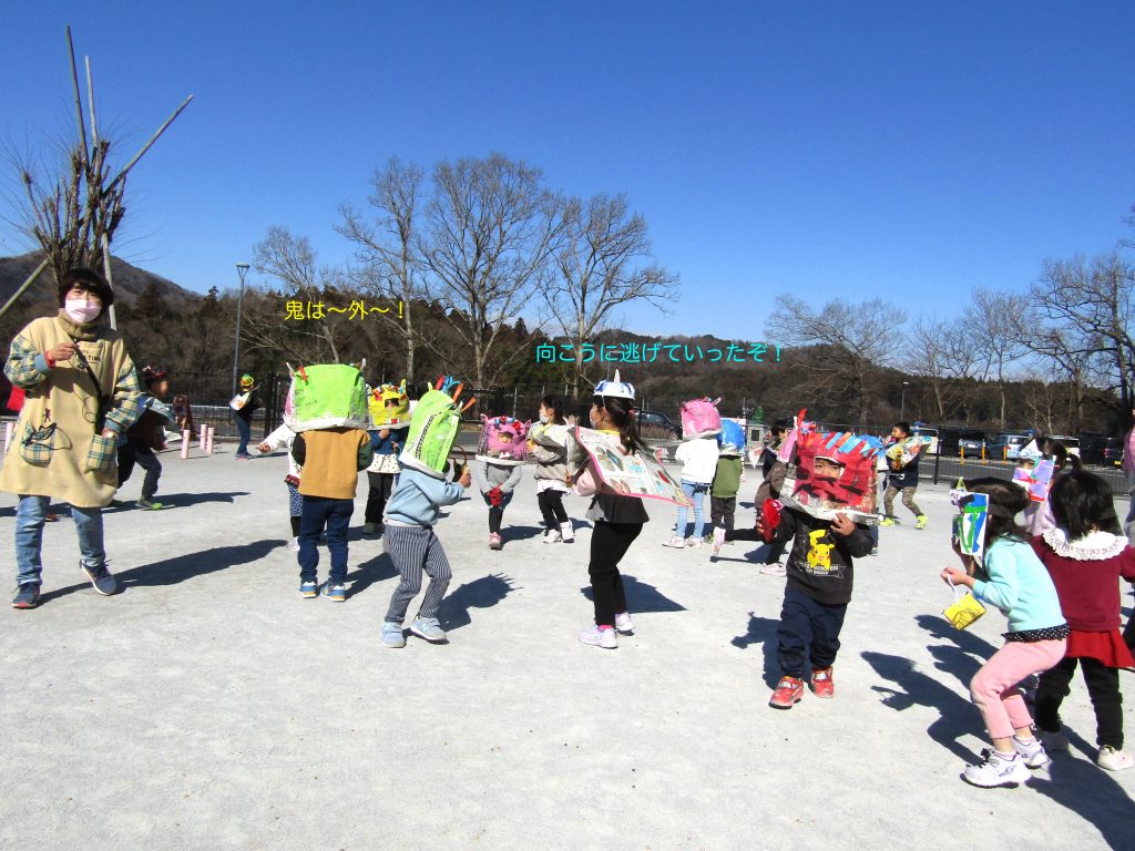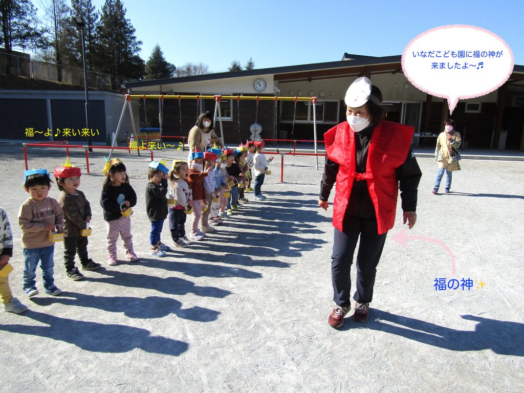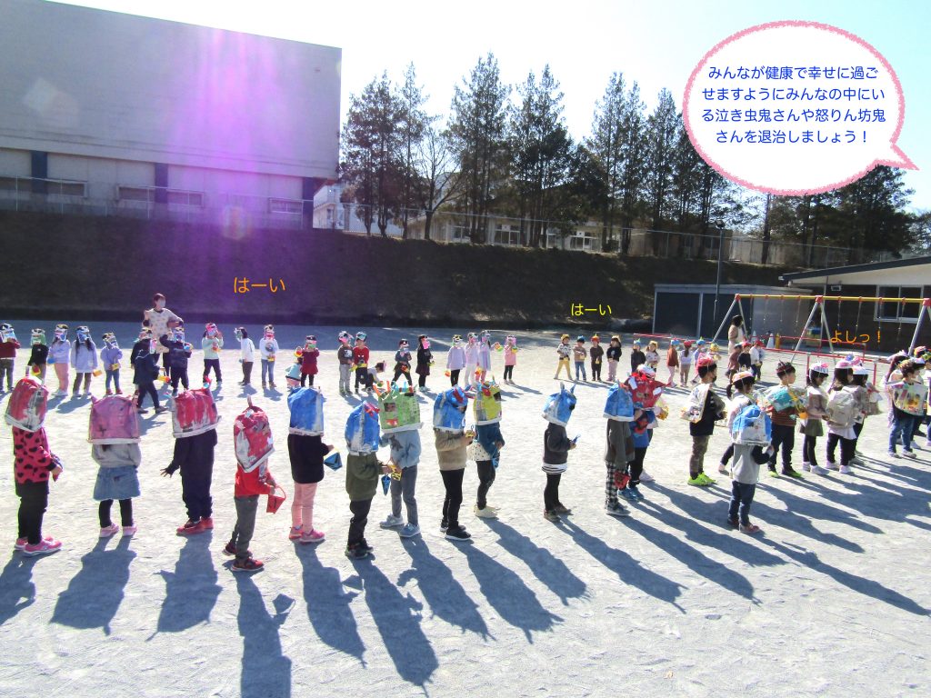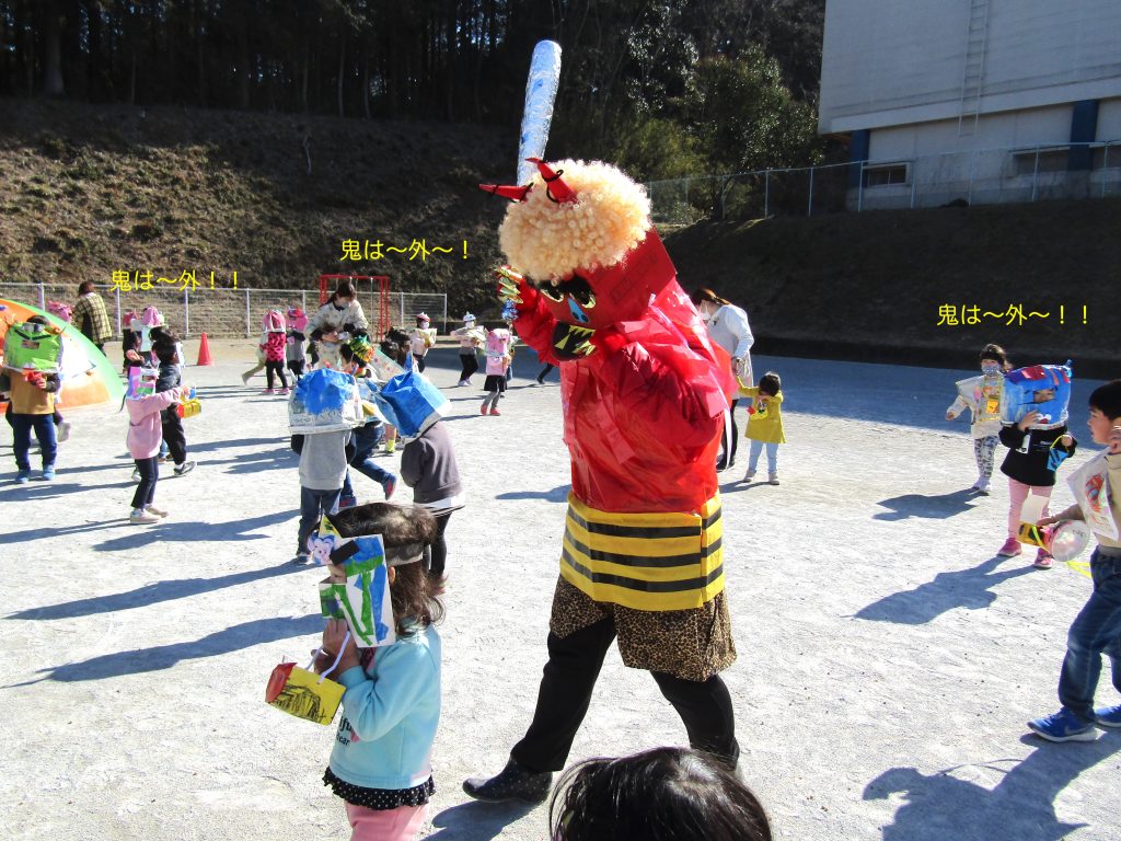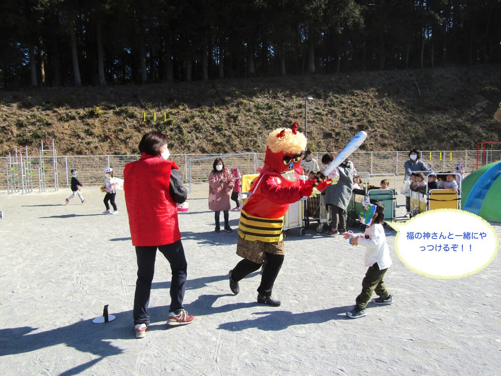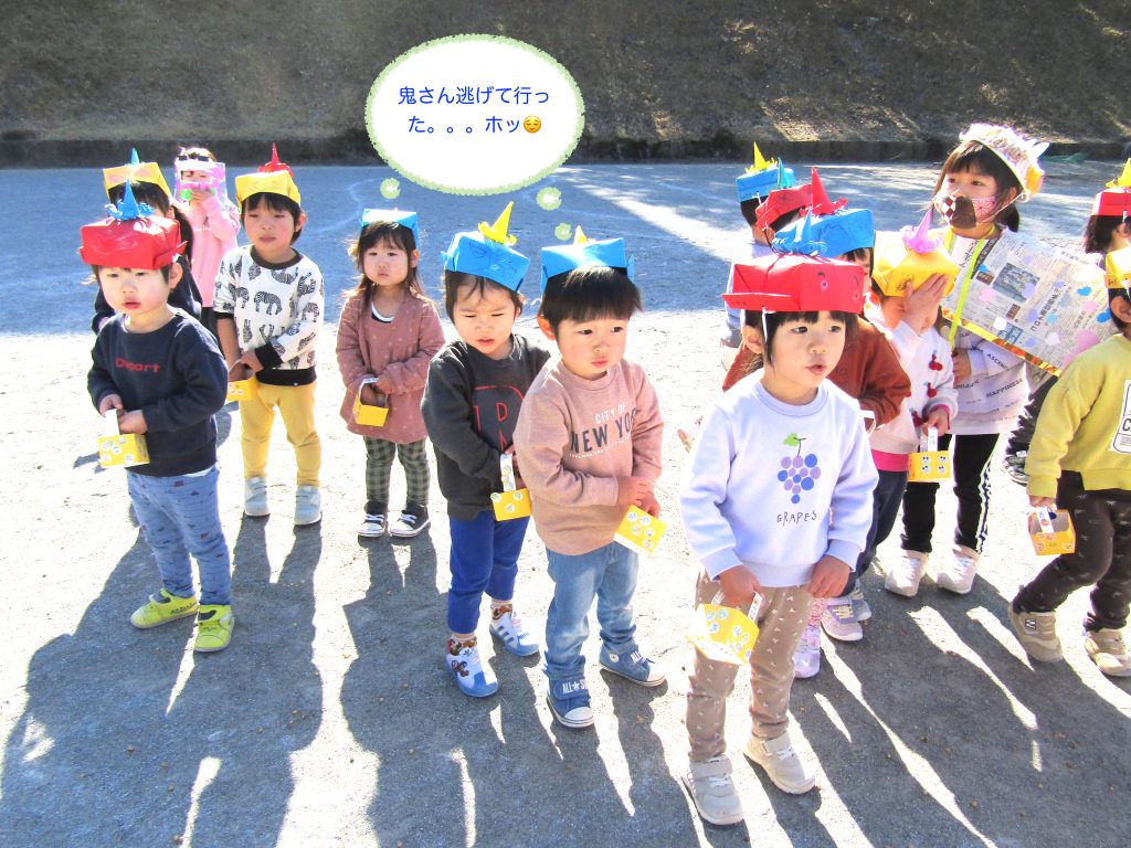 「鬼は〜外!鬼は〜外〜!」「福は〜内!福は〜内!!」こども園の園庭に元気な声が響き渡りました♬