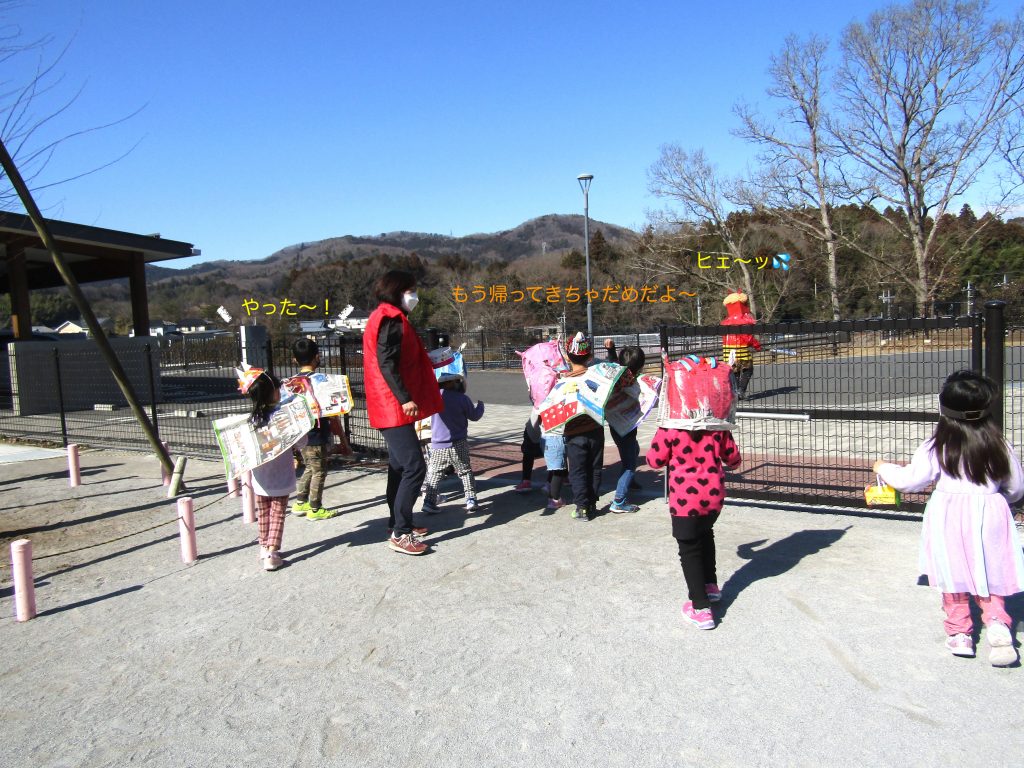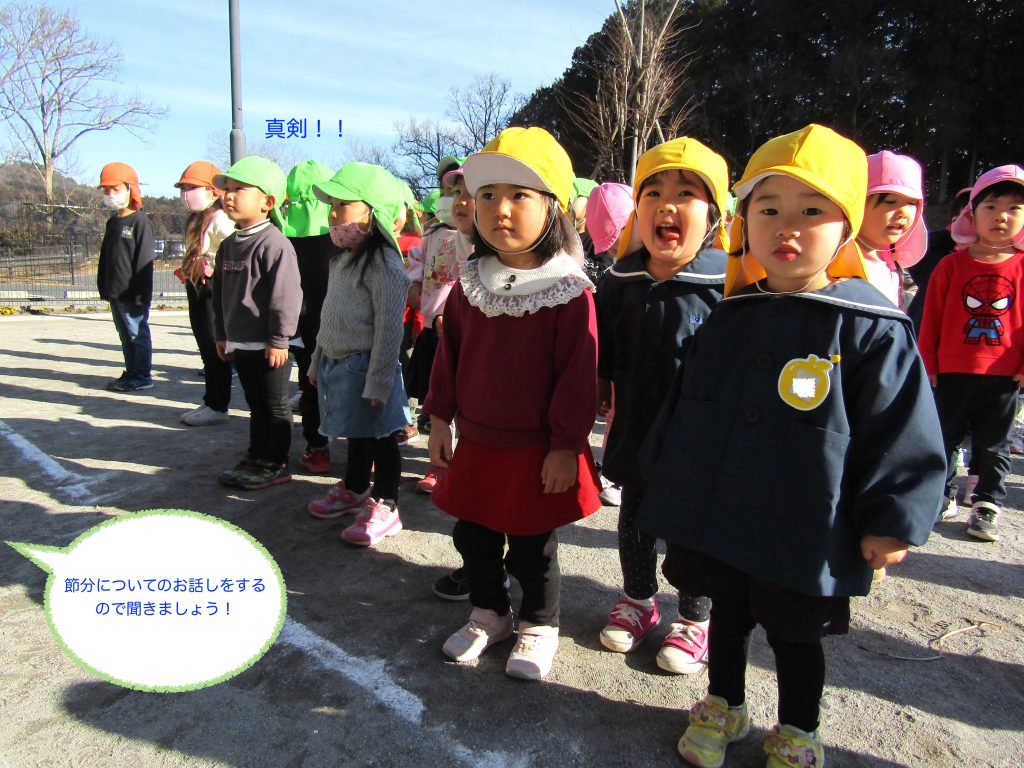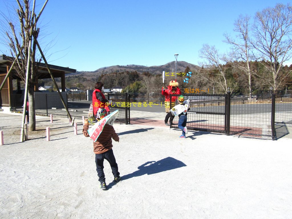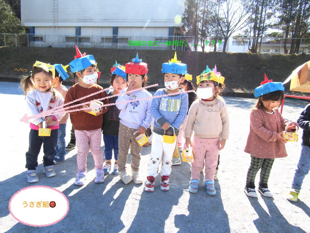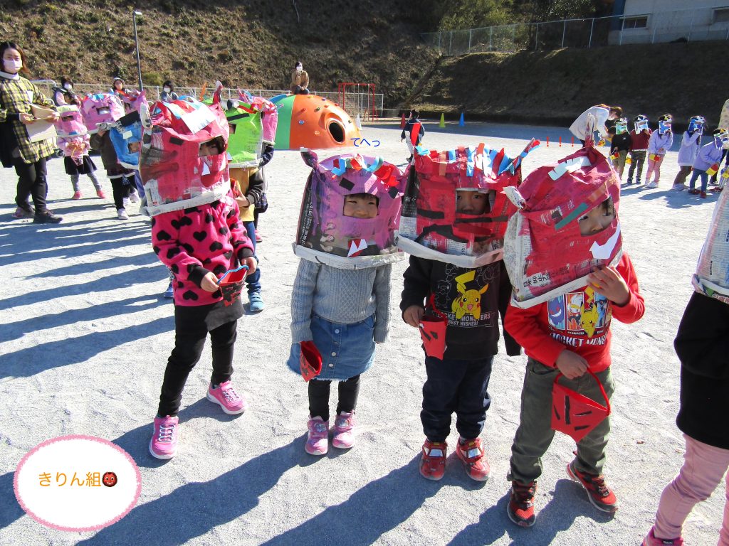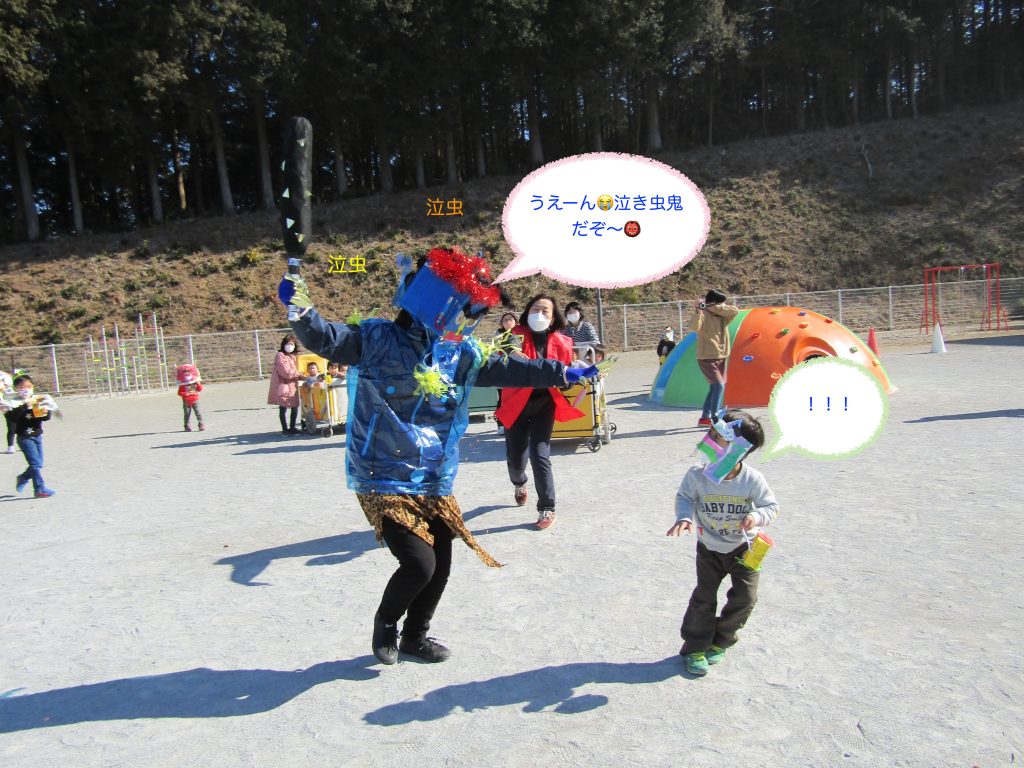 「鬼は〜外!鬼は〜外〜!」「福は〜内!福は〜内!!」こども園の園庭に元気な声が響き渡りました♬