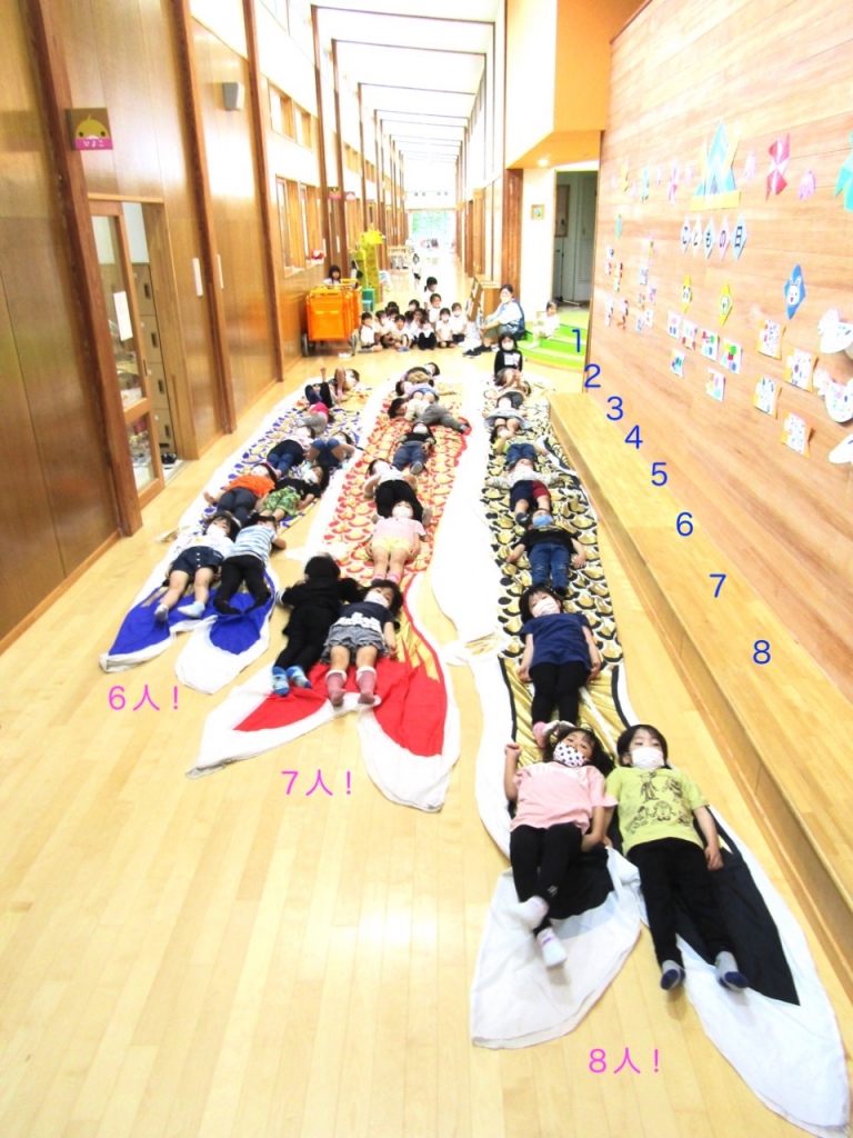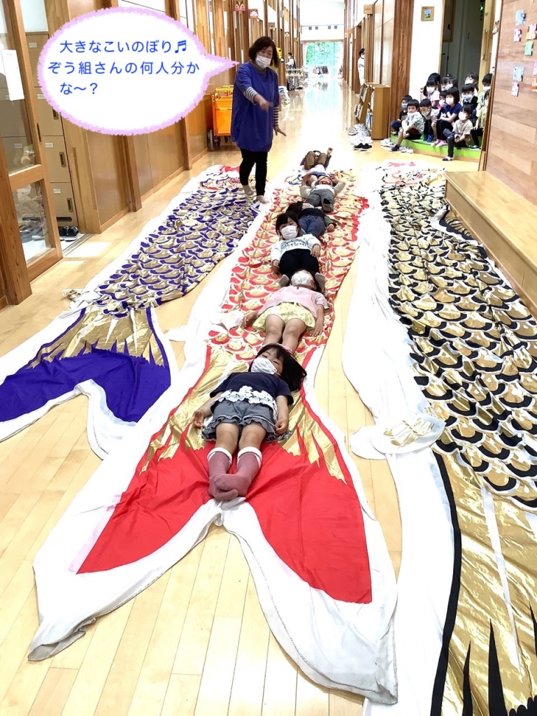 大きなこいのぼりがこども園に遊びにきました🎏 2022 4/27 ニュース なが〜い廊下になが〜いこいのぼり🎏 広げてみたらこんなに長くて大きくてびっくり!! 子どもたちも大きなこいのぼりを見て大興奮😁 こいのぼりの上で寝転がったりはだしで歩いたりと楽しんでます♬ 大きなこいのぼり〜♬ぞう組さんの何人分かな〜(笑) 今日は大きなおおきなこいのぼりがこども園に遊びにきましたよ〜🎏子どもたちお部屋から出てくると「え!?大きい!!」「なが〜い!!」とみんな大興奮でした♬明日のこどもまつりが楽しみだね♪ ニュース URLをコピーしました! じゃがいも種芋植え🥔 カマキリの赤ちゃん😀 コメント コメントする コメントをキャンセルコメント ※ 名前 ※ メール ※ サイト 次回のコメントで使用するためブラウザーに自分の名前、メールアドレス、サイトを保存する。 上に表示された文字を入力してください。 Δ