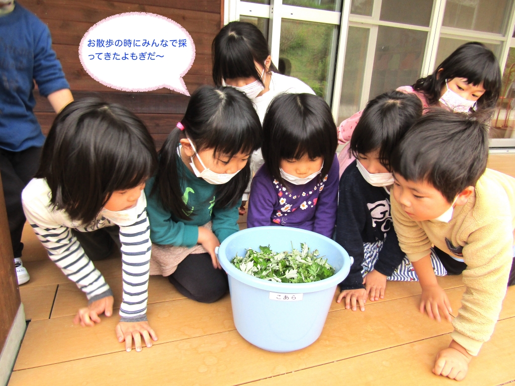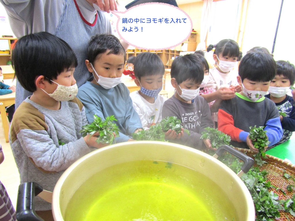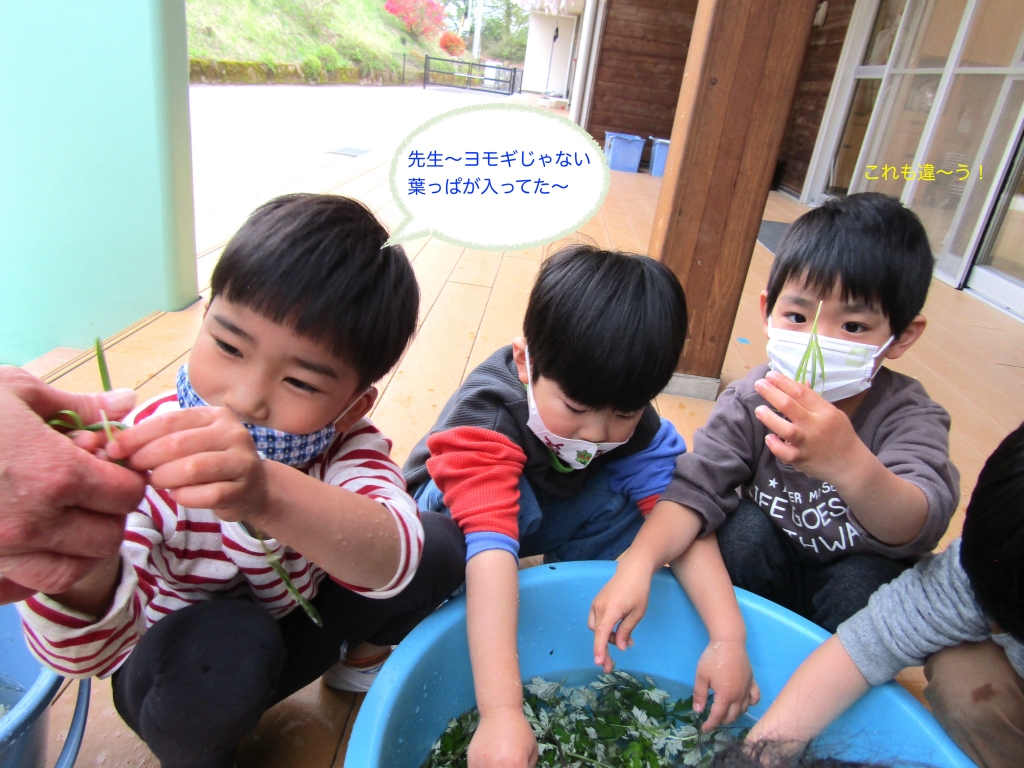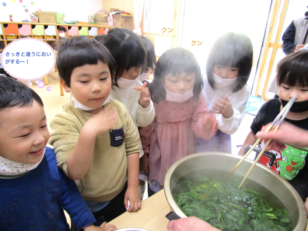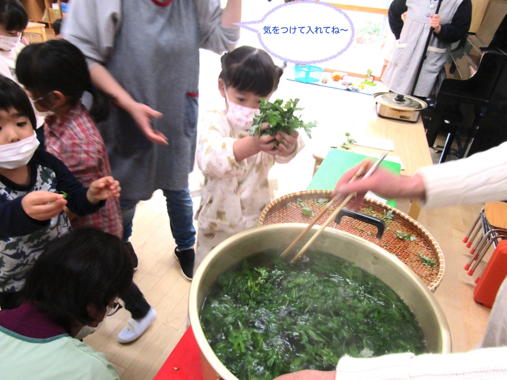 ヨモギ餅作り パート1 2022 5/11 ニュース 園庭の土手やお散歩中に「先生!ヨモギ!!」子どもたちみんなで集めてきたヨモギをきれいに洗います😁 「ヨモギってどんなにおいなんだろう?」 「ヨモギじゃない草が混じってたよ〜」ヨモギを洗いながらゴミや草を取り除いてくれました😀 奇麗に洗えた後はゆでていきます♪ぞう組さんここでも「クンクン」「さっきと違うにおい〜」 ゆでたらヨモギの葉裏のうぶげがなくなったことに気づきました(^o^) 消毒済みのハサミを使ってヨモギを細かく切っていきます✂️ さてこのヨモギがこの後どうなるのかお楽しみです♫ ヨモギパート2へ続く。。。 ニュース URLをコピーしました! ヨモギ餅作り パート3 ヨモギ餅作り パート2 コメント コメントする コメントをキャンセルコメント ※ 名前 ※ メール ※ サイト 次回のコメントで使用するためブラウザーに自分の名前、メールアドレス、サイトを保存する。 上に表示された文字を入力してください。 Δ