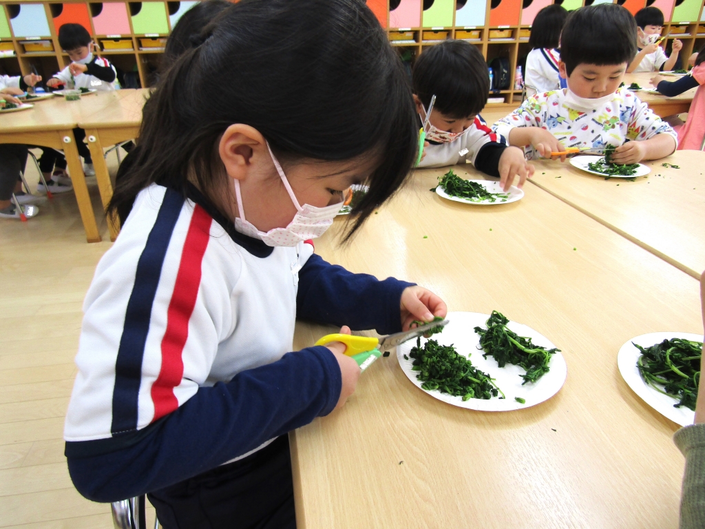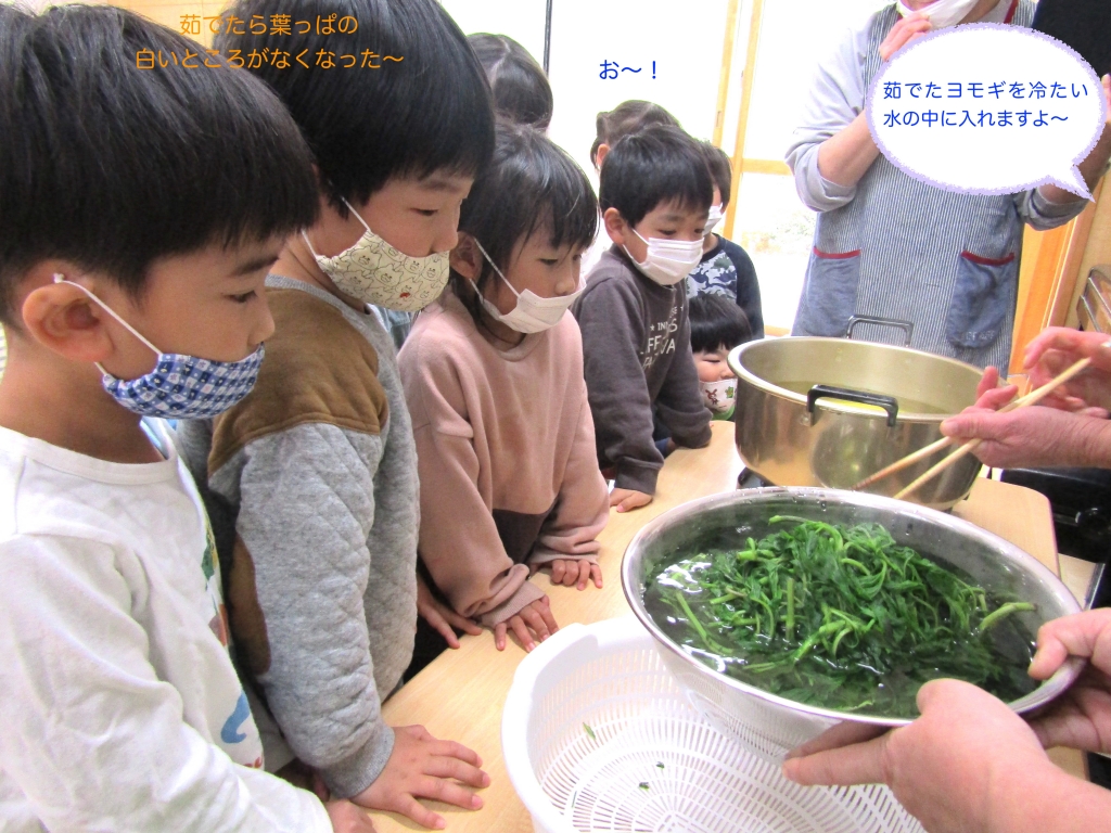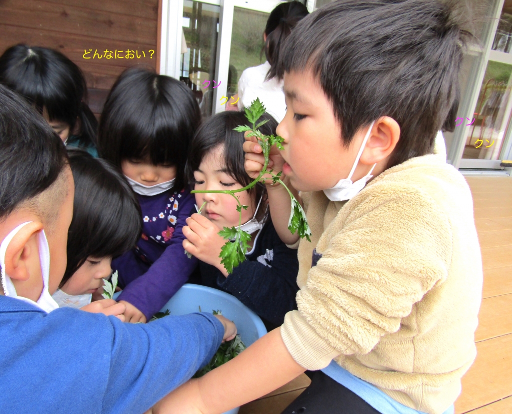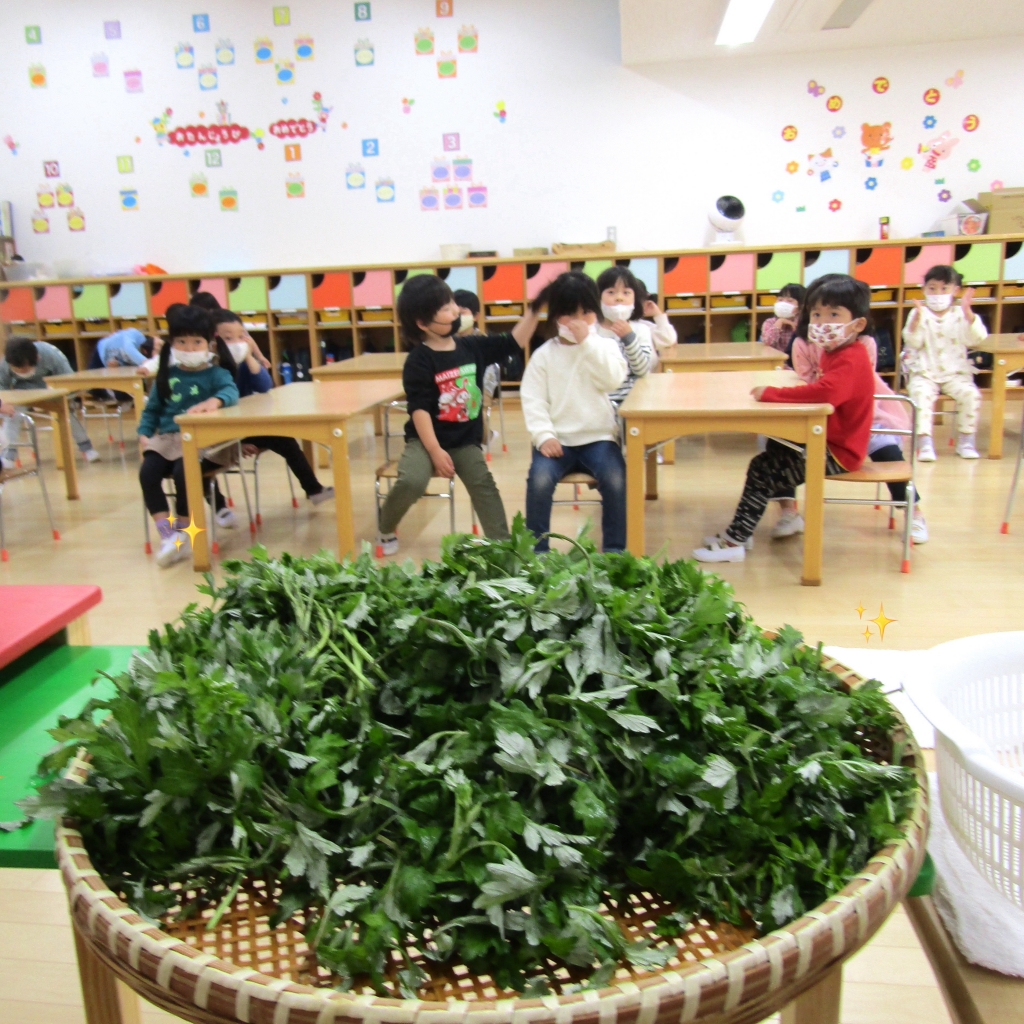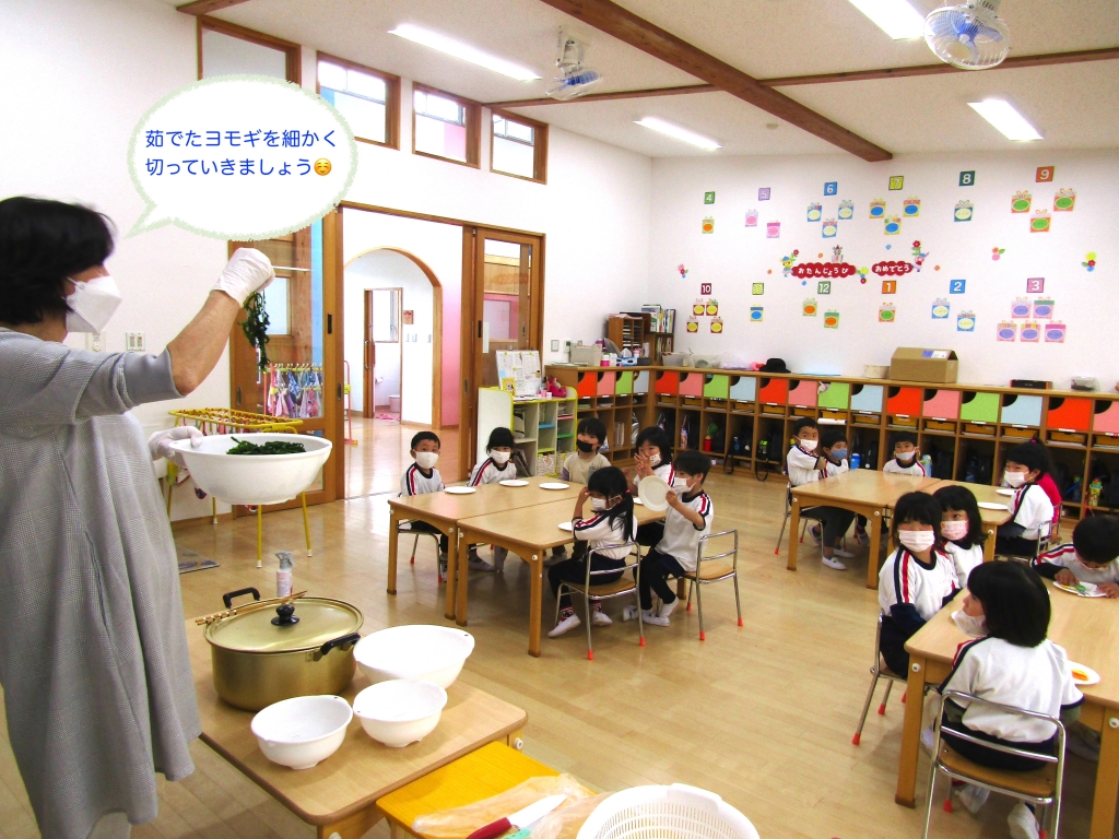 ヨモギ餅作り パート1 2022 5/11 ニュース 園庭の土手やお散歩中に「先生!ヨモギ!!」子どもたちみんなで集めてきたヨモギをきれいに洗います😁 「ヨモギってどんなにおいなんだろう?」 「ヨモギじゃない草が混じってたよ〜」ヨモギを洗いながらゴミや草を取り除いてくれました😀 奇麗に洗えた後はゆでていきます♪ぞう組さんここでも「クンクン」「さっきと違うにおい〜」 ゆでたらヨモギの葉裏のうぶげがなくなったことに気づきました(^o^) 消毒済みのハサミを使ってヨモギを細かく切っていきます✂️ さてこのヨモギがこの後どうなるのかお楽しみです♫ ヨモギパート2へ続く。。。 ニュース URLをコピーしました! ヨモギ餅作り パート3 ヨモギ餅作り パート2 コメント コメントする コメントをキャンセルコメント ※ 名前 ※ メール ※ サイト 次回のコメントで使用するためブラウザーに自分の名前、メールアドレス、サイトを保存する。 上に表示された文字を入力してください。 Δ