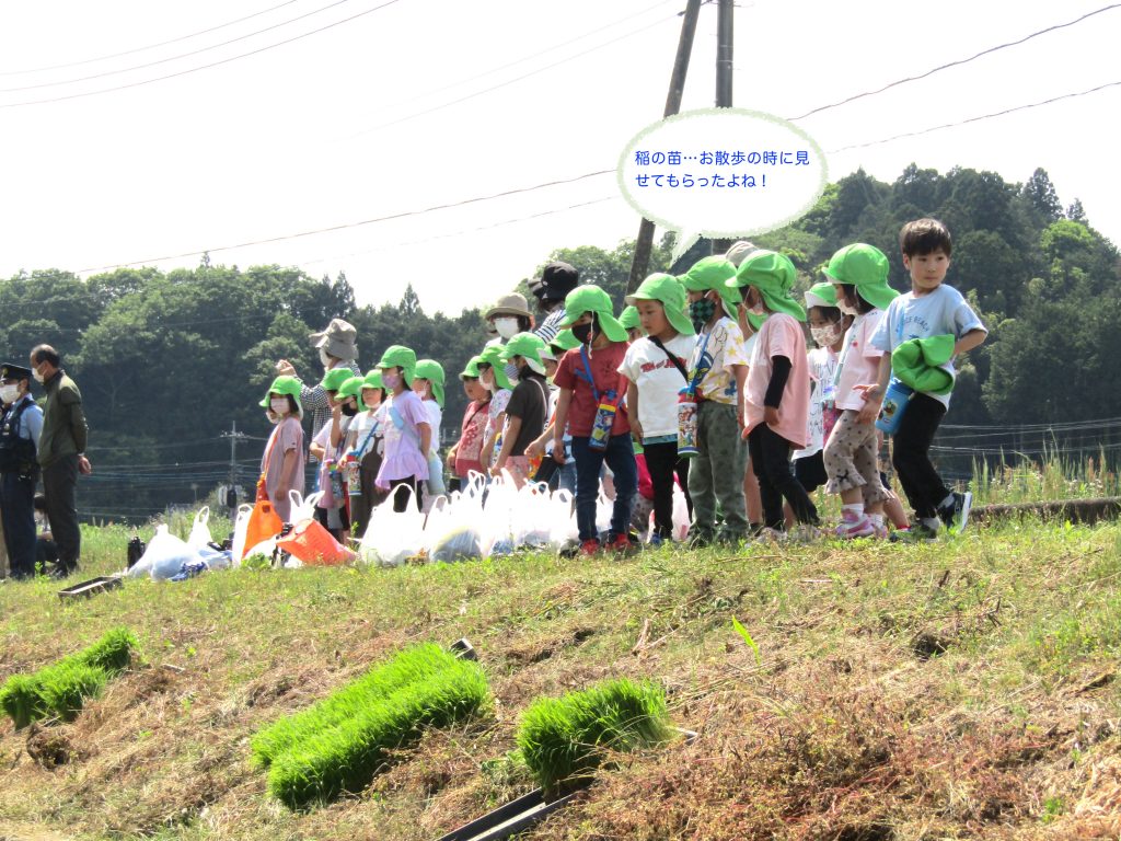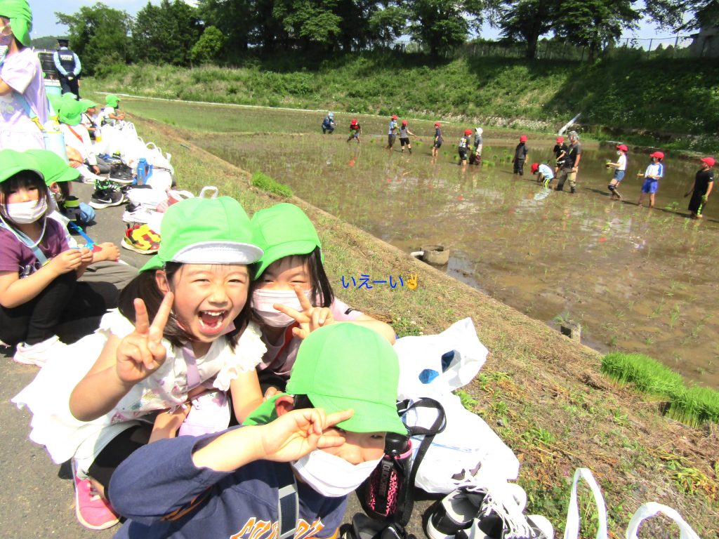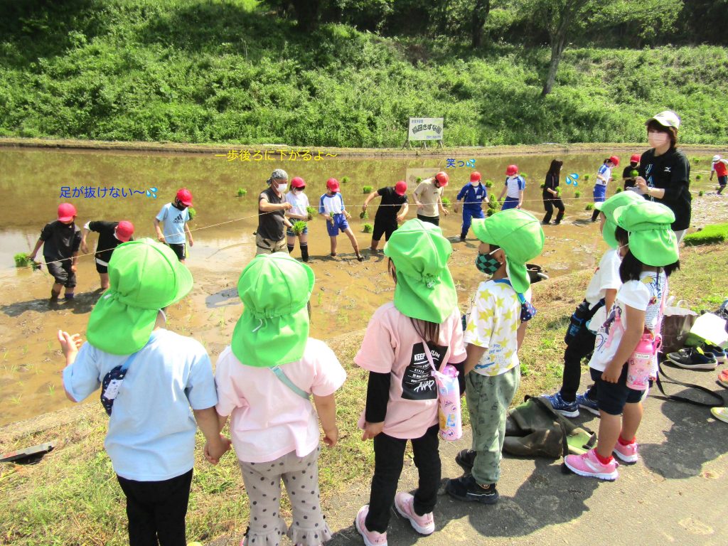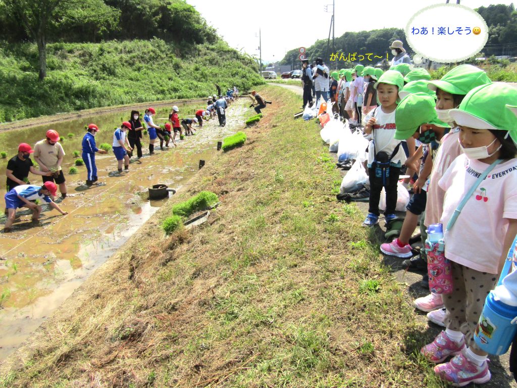 今日は、隣接している小学校6年生の田植えを見せてもらいました♪4月のお散歩では近所のお宅のハウスの中で稲苗を育ててる様子を見ていたので「これがお米になるんだよね!」「この間教えてもらったから知ってる〜♪」などと会話を楽しみながら田植えをするお兄さんお姉さんを応援していました😁普段見慣れているのは機械での田植えですが、今日は、手植えという貴重な田植えの様子を見せていただきました!先生方、6年生のみなさんありがとうございました☺️