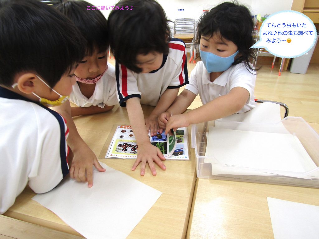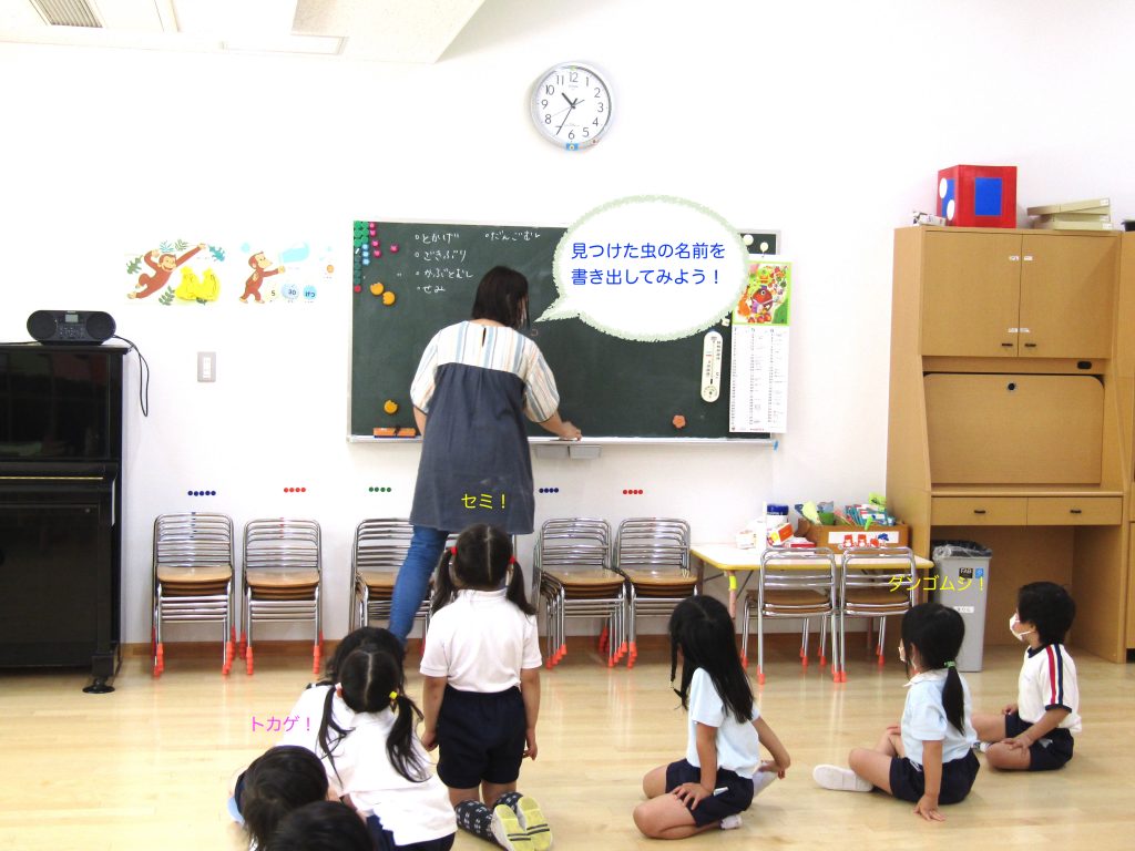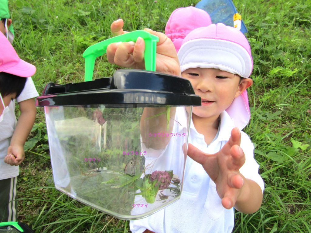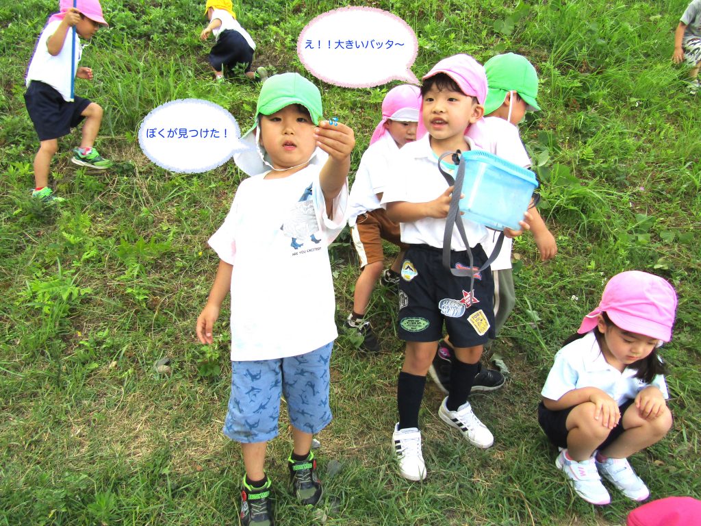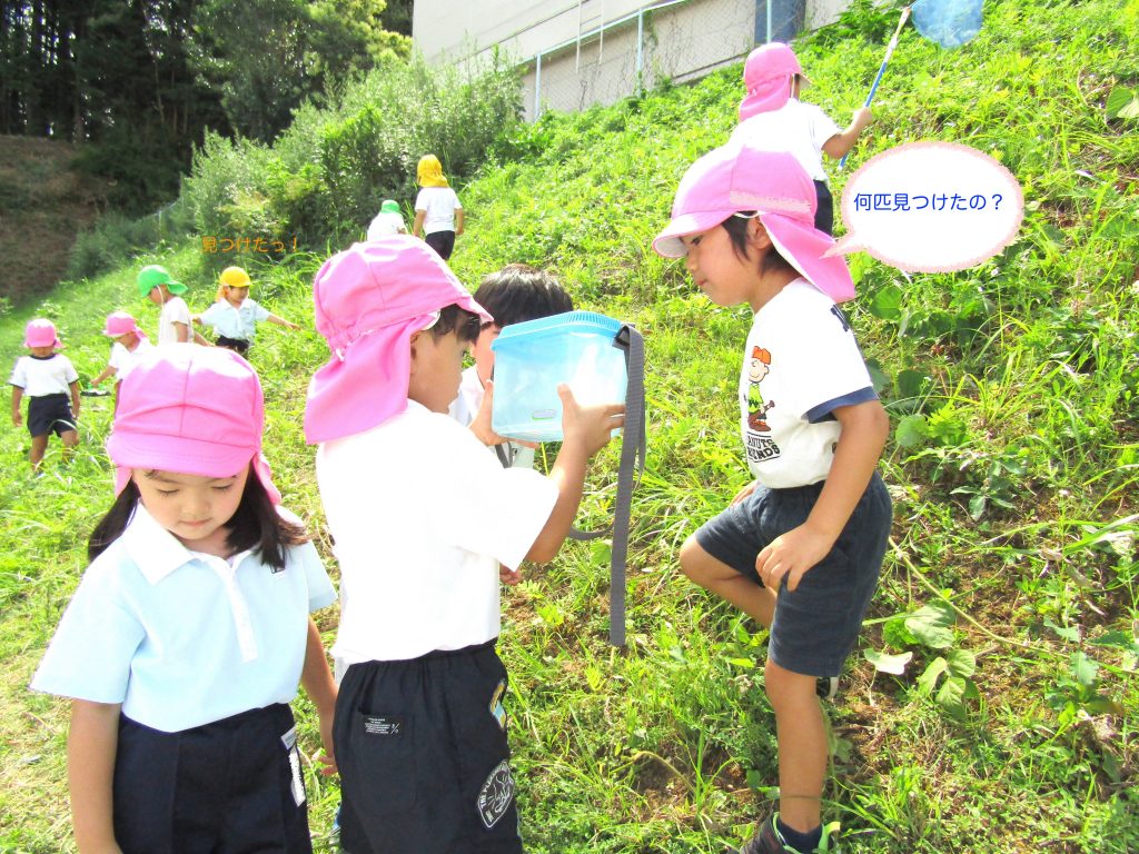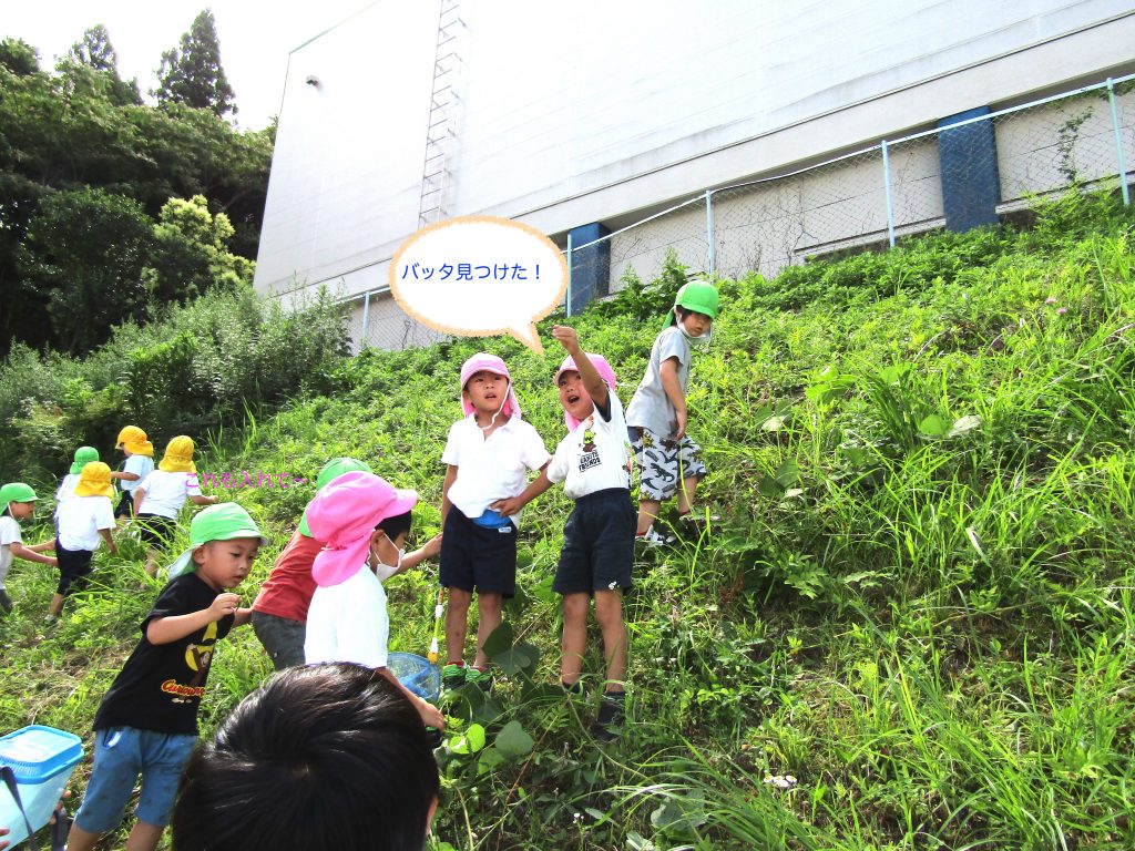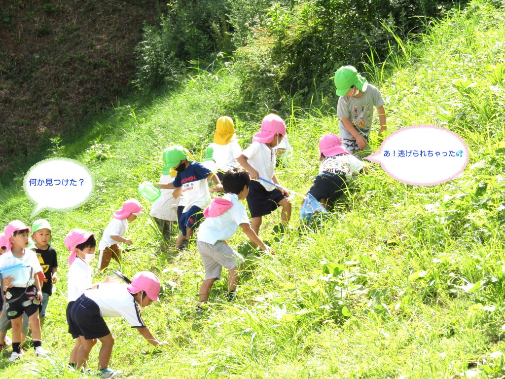 子どもたちは、こども園の園庭の土手での虫採りが日課のよう(笑)