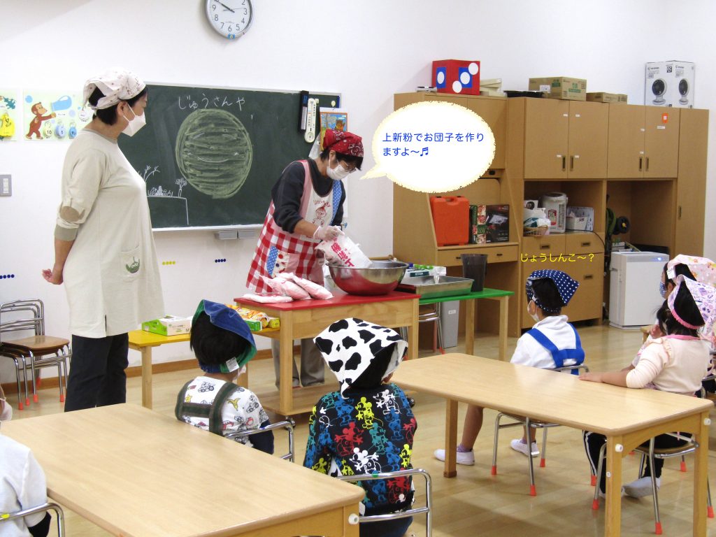 明日は、10月8日十三夜です♪今回は、きりん組さんがお団子作りに挑戦〜😁
