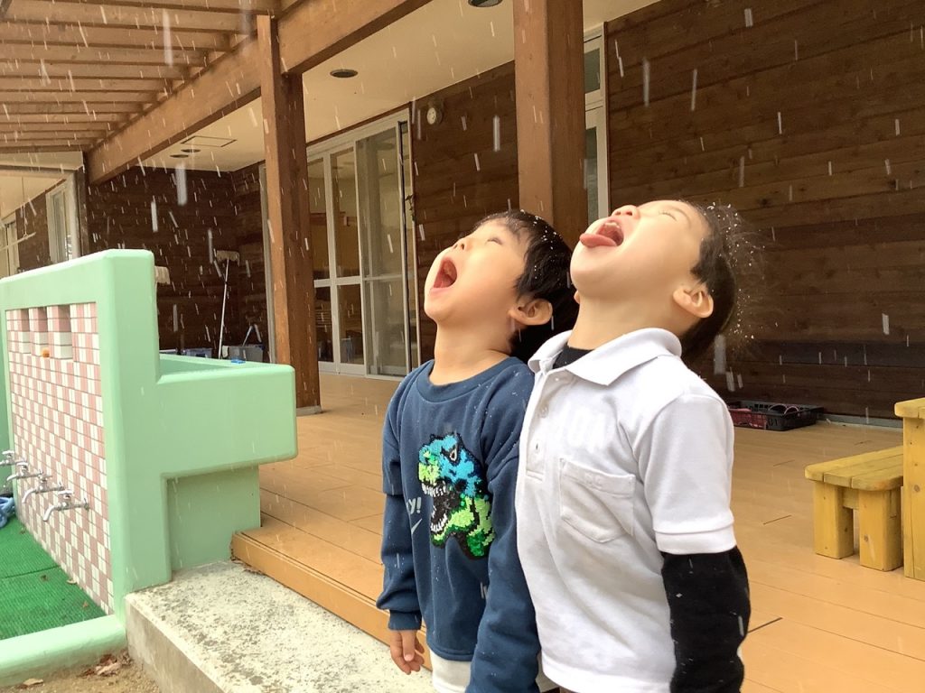 雪が降ったよ〜⛄️ 2023 2/15 ニュース 「明日、雪降るんだよね〜♫」前日から楽しみにしていた子ども達😁雪が降り出すと「雪だ〜!!!」「雪だるま作りた〜い♪」大興奮(笑) 雪遊びを楽しんでいる様子をカメラにおさめようとこっそり近寄っていくと・・・「雪玉が!!?」飛んでくる雪玉をよけながらパシャリ💦一緒に楽しんでいます😁 み〜んなで作った雪だるま〜⛄️と一緒に「はい♪ポ〜ズ😁」 そしていなだこども園もうひとつの楽しみ♪雪すべり〜😆 いなだこども園の周りが真っ白になり、子どもたちは雪遊びを満喫しました♪ ニュース URLをコピーしました! 親子広場「いなっぽ」・一時預かり保育のお知らせ 陶芸教室✨ コメント コメントする コメントをキャンセルコメント ※ 名前 ※ メール ※ サイト 次回のコメントで使用するためブラウザーに自分の名前、メールアドレス、サイトを保存する。 上に表示された文字を入力してください。 Δ