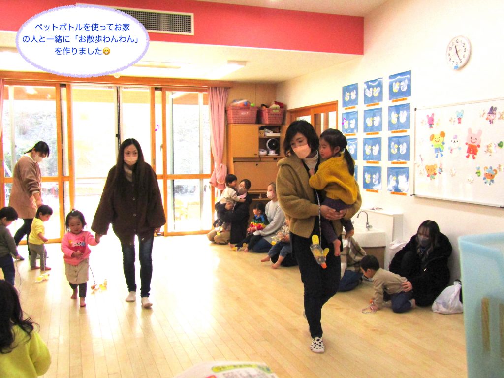 りす組さん保育参加の様子(おうちの人と一緒にお散歩わんわんを作って音楽に合わせてお散歩しました😁)