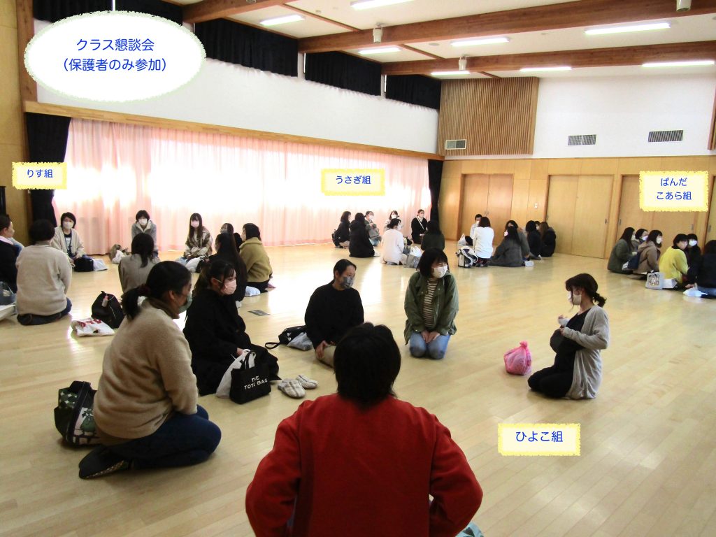 見てもらえました♪保護者のための読み聞かせでは、大人になってから読んであげることはあっても読んでもらうことがなくなった保護者の皆さん♪早口ことばに手遊び、読み聞かせととても楽しんで参加する様子が見られました😀最後に保護者だけのクラス懇談会は大盛り上がり♪「普段なかなかお話しできない方とお話しができて良かった」と感想をいただきました😀