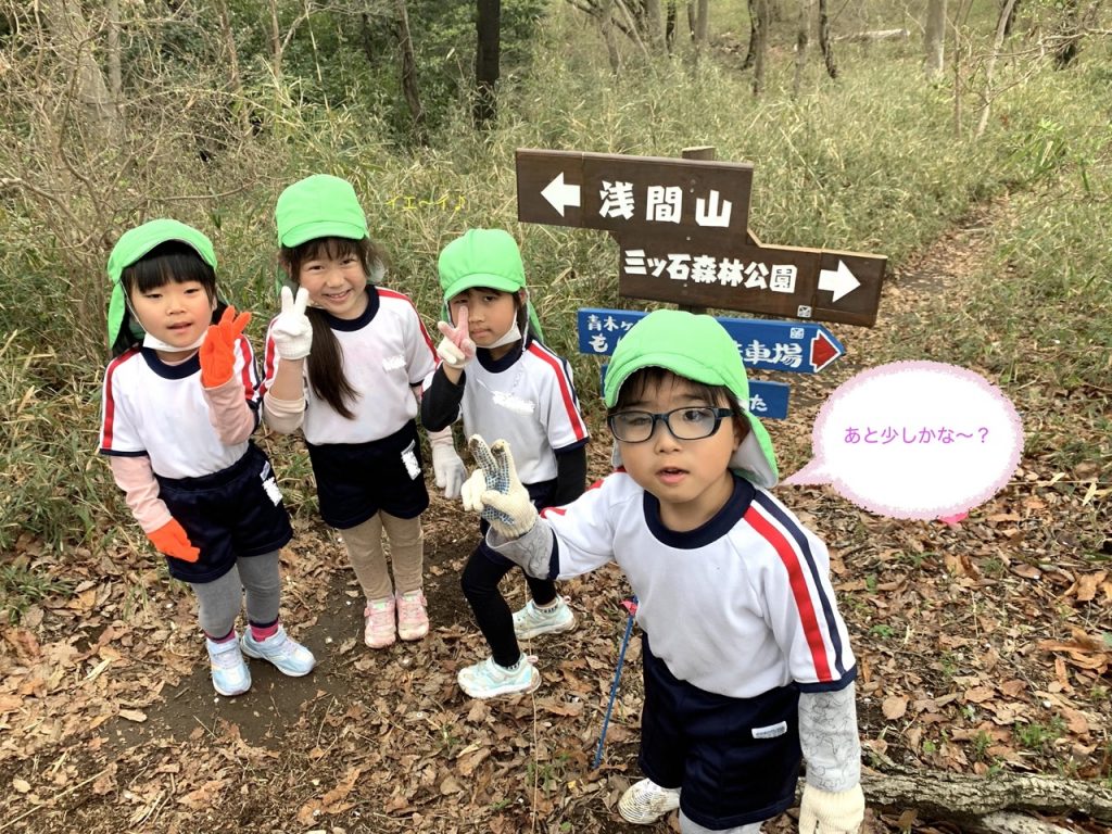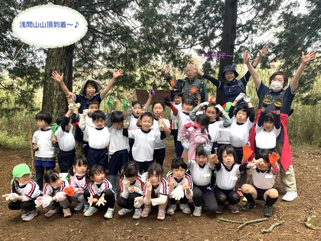 今回、ぞう組さんは県内のジオパークに詳しい山田さんの紹介で浅間山(せんげんさん)登山をしました😁山田さんが子どもたち一人ひとりに鳥笛を作ってきてくれバスの中で鳥笛のお話しをしてくれました♪途中とちゅうで鳥笛を吹いたり見たことのない草花を見つけると山田さんに質問しながら楽しく山頂を目指しましたよ☺️今回は保護者の方の参加がなく、登れるかな?と不安でしたが…心配をよそにぞう組さん最後まで元気いっぱい登りきりました♪山頂に着くまでに「おなかすいた〜」という声があちらこちらから(笑)下山後はいよいよお待ちかねのお弁当タ〜イム😋 お別れ遠足 パート2へ続く…