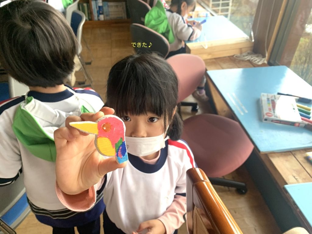 浅間山に登り切ったぞう組さんお待ちかねのお弁当タイム〜を山小屋ですあせると♪雪入ふれあいの里に移動し、自然の3D映像を鑑賞しました♪みんな鳥が飛び立つ映像を3Dで見ると「え?すご〜い!つかめそう!!」と大興奮♪鑑賞会の後は、思い出に鳥のブローチorキーホルダーを作りました♪「楽しかった〜!」帰りのバスの中は〜😪💤みんなぐっすりでした(笑)