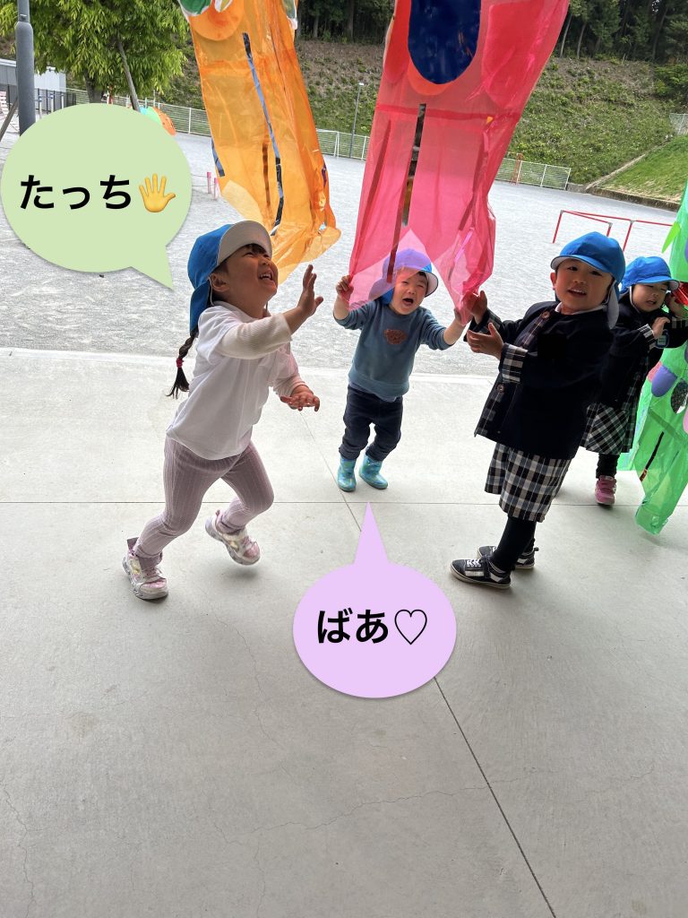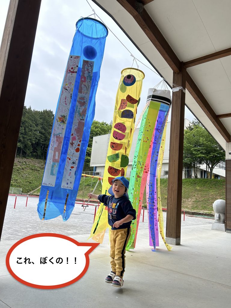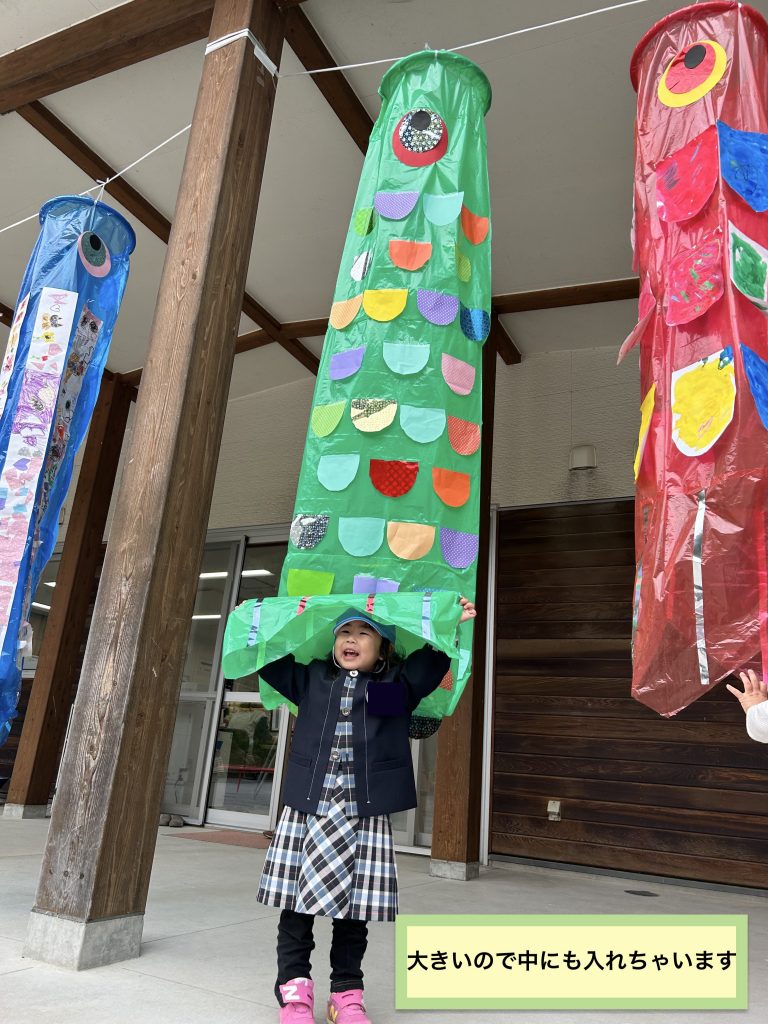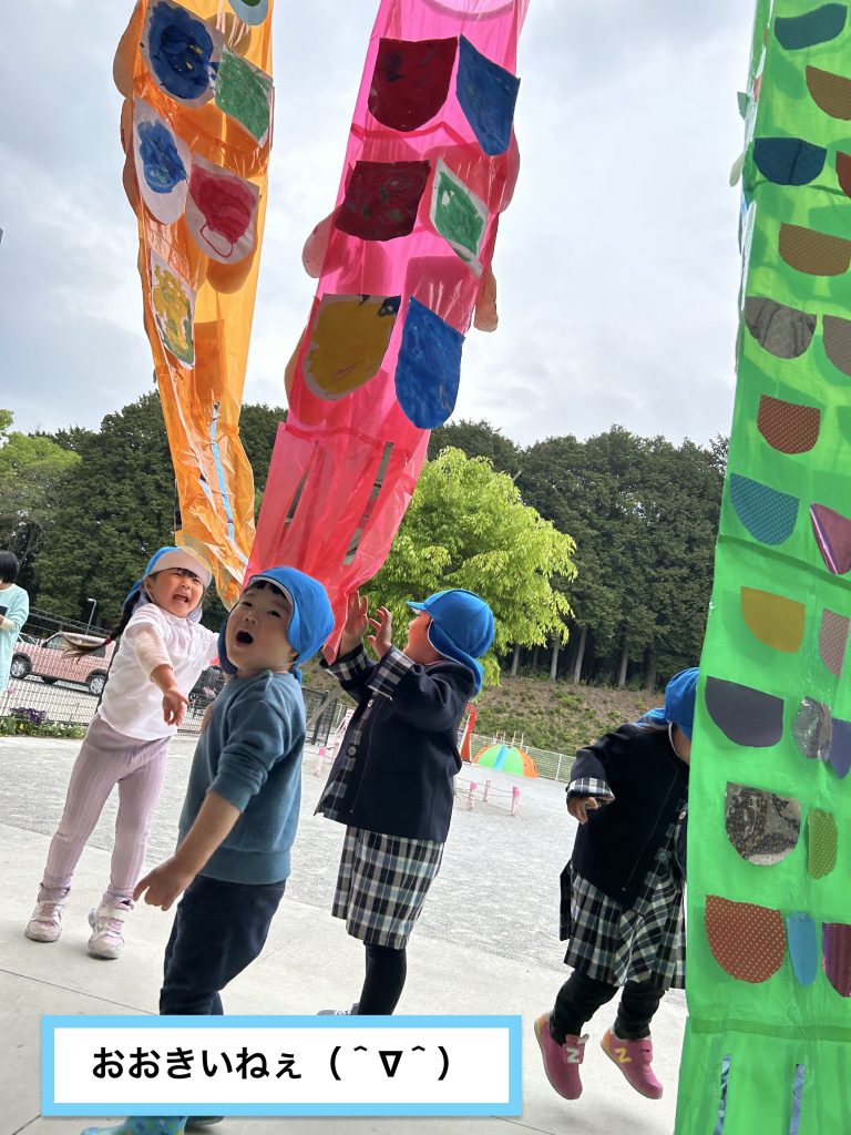 自分の体の何倍もあるこいのぼりに気持ちが高まります!!