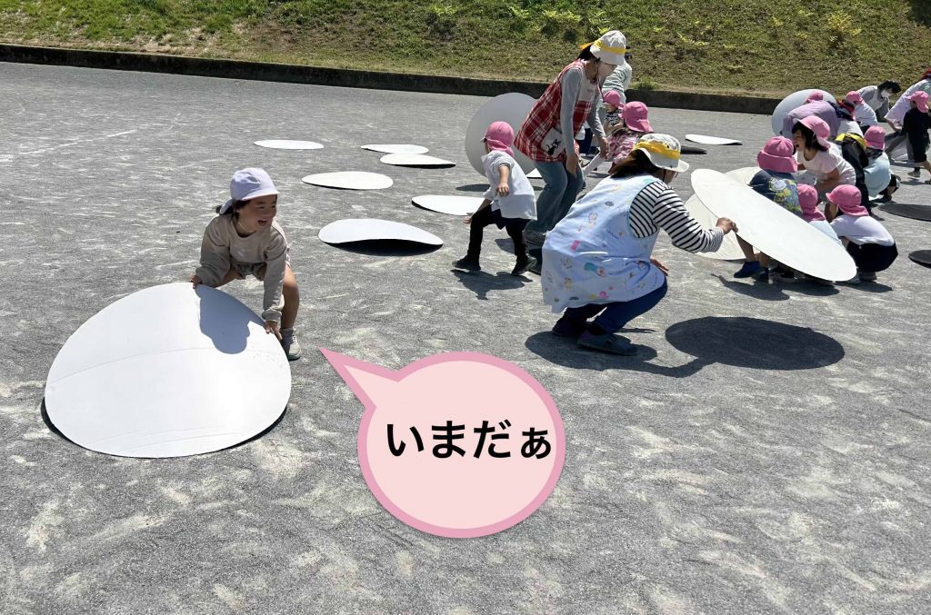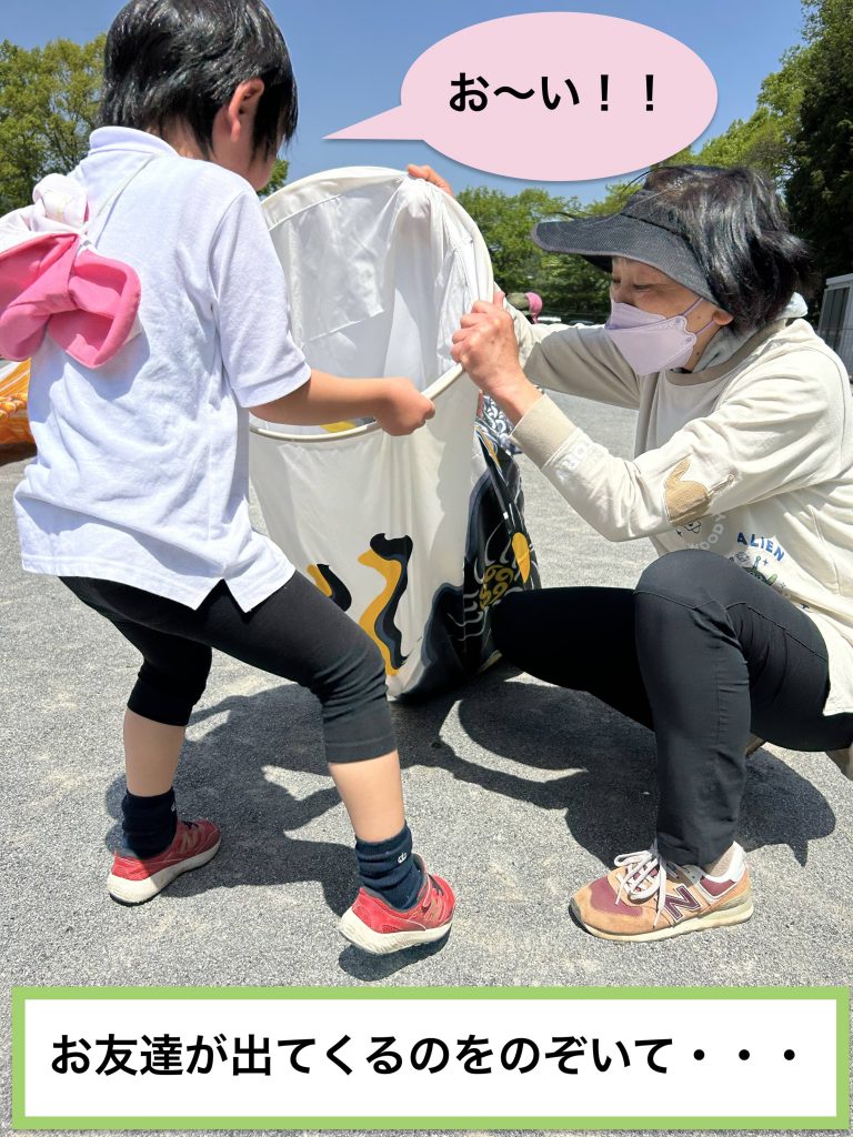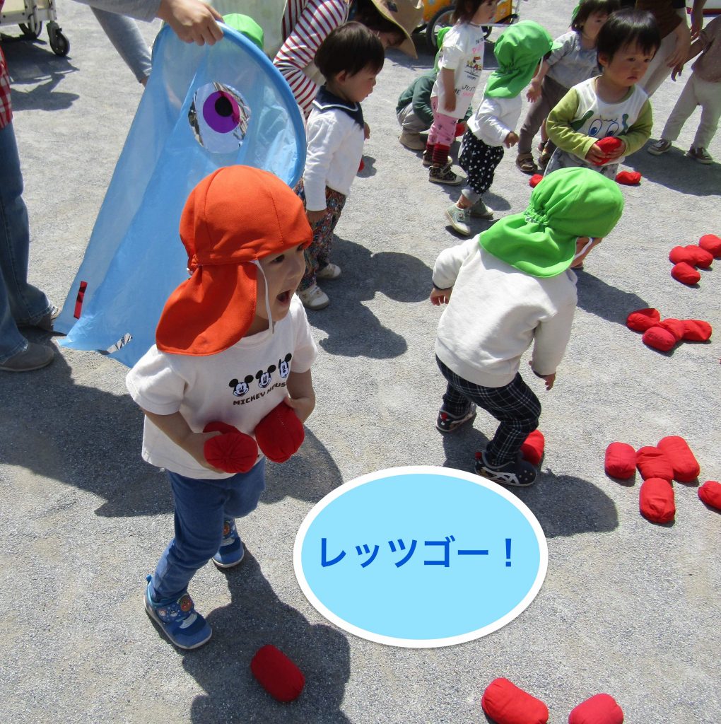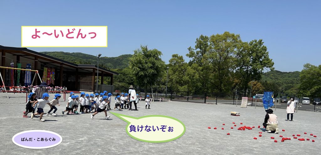 ★3・4歳児さんは本気の玉入れ。競争心が芽生え始めたぱんだ・こあら組さんvs勝ちまっしぐらのきりんぐみさん。