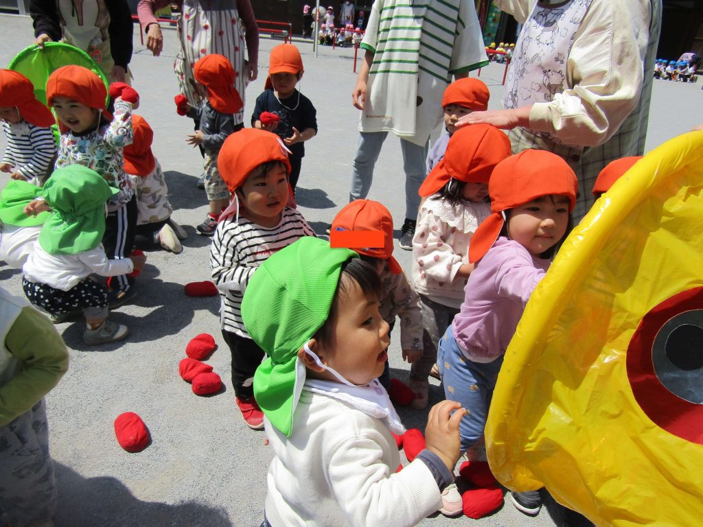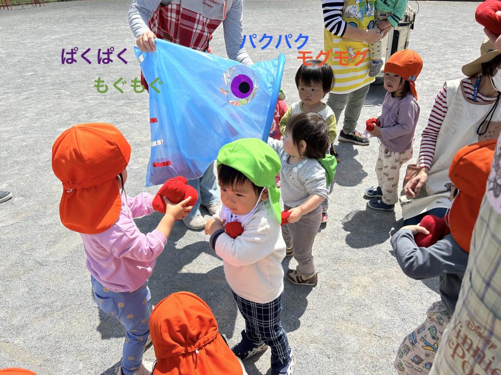 ★1・2歳児さんはこいのぼりさんにおいしいご飯を食べさせてあげます。
