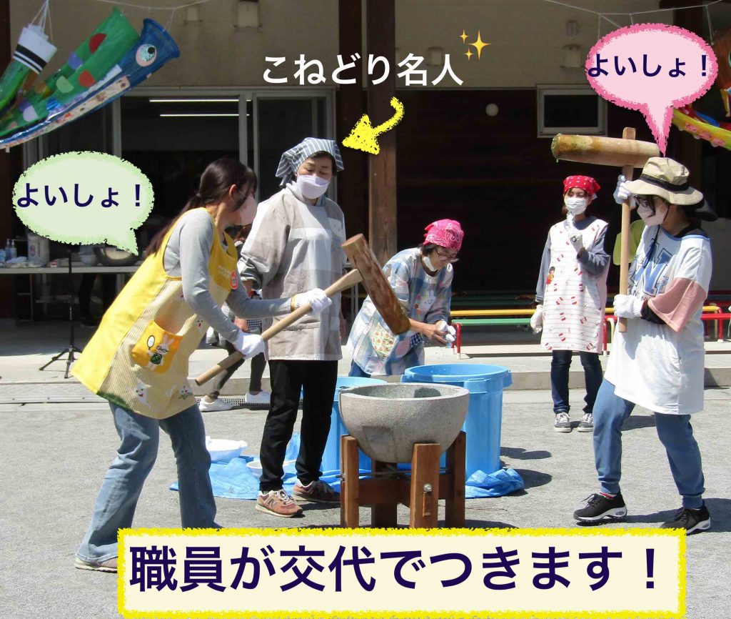 いよいよお餅つき!!職員が変わるがわるつきます。保育教諭って力仕事なんですよぉ(笑)