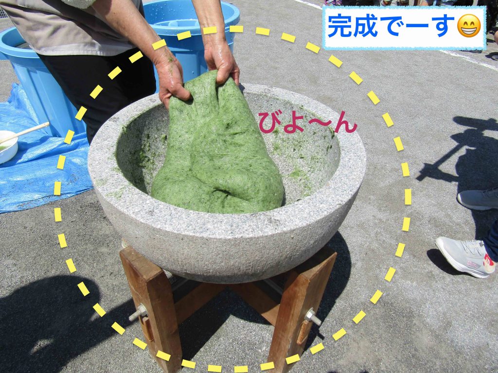 よもぎのペーストを入れてつくと、こんなにいい色♡コシのあるお餅ができました✨✨