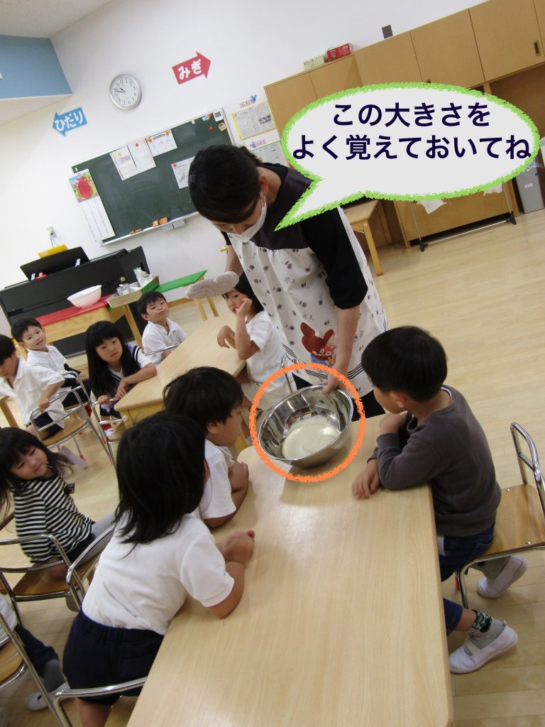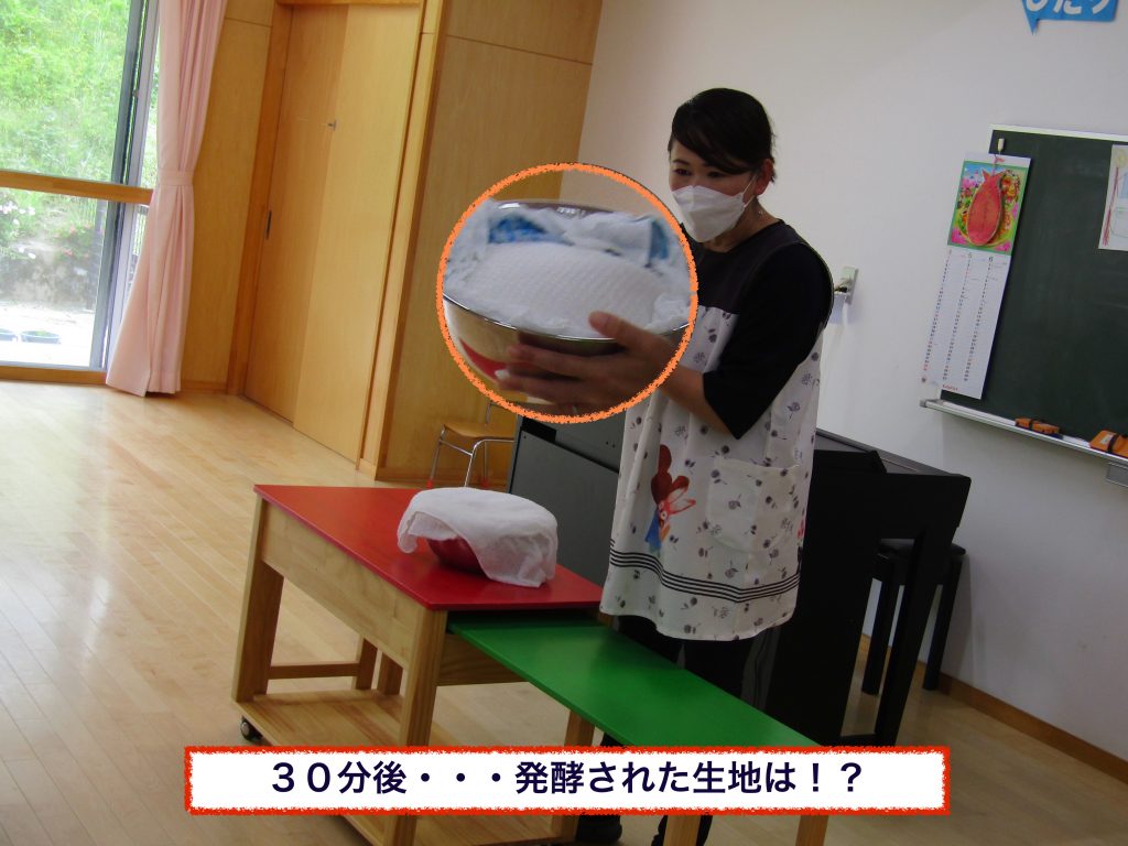 こね終わった生地は発酵させます。生地の大きさはどう変わるかな??