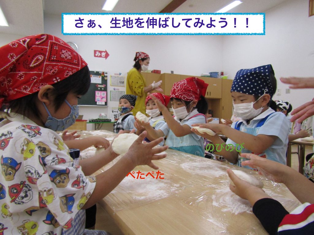 ピザ作り体験をした年長児😃さてさて、おいしいピザができるかな??