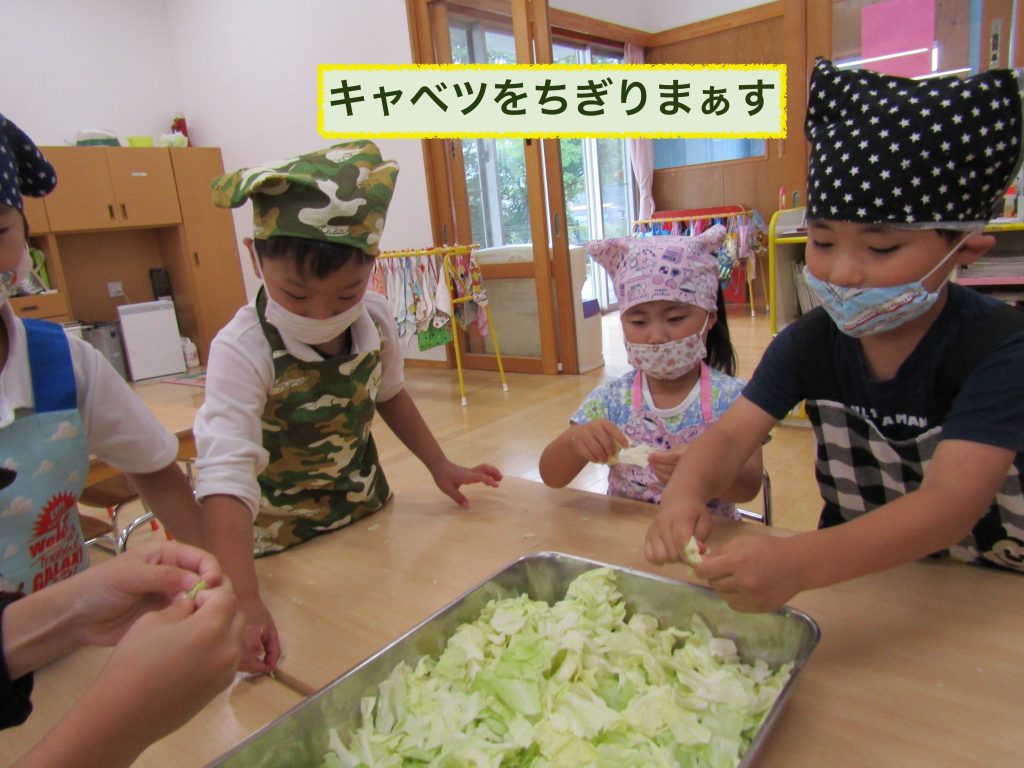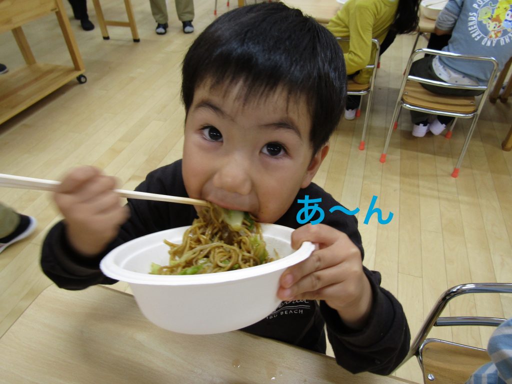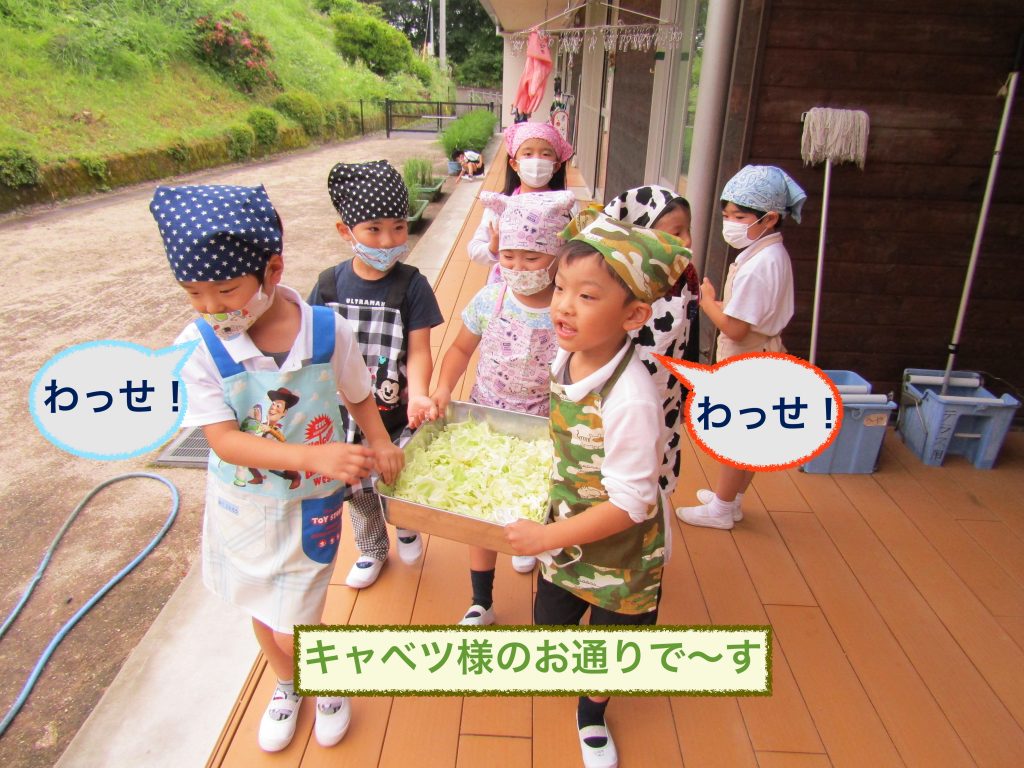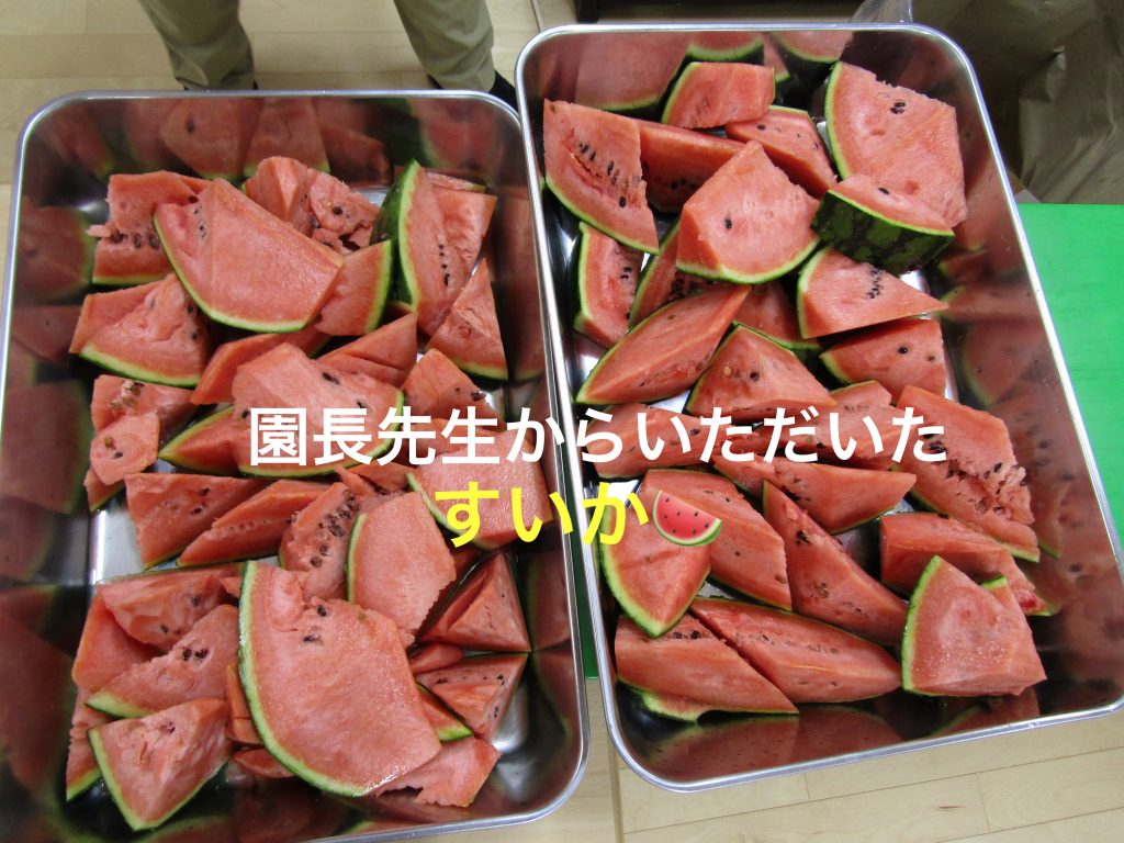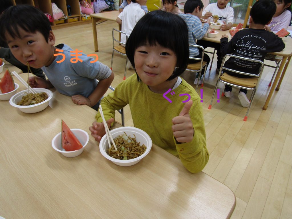 完成したのは、焼きそばです🥢さあ『いただきまぁす!!』園長先生からスイカの差し入れをいただきました🍉✨甘くって、さっぱり♡たくさんいただきました😆