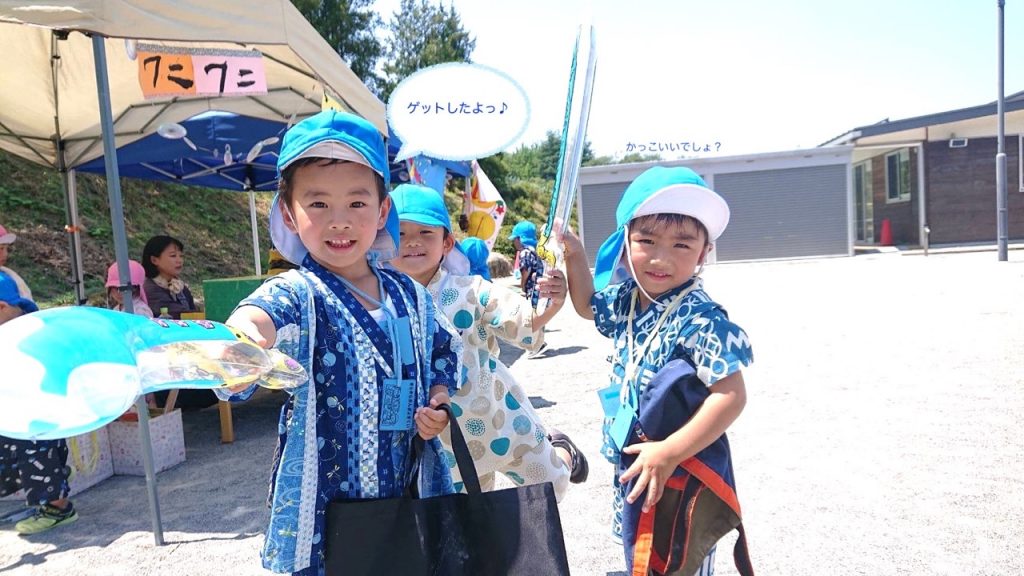 小さいお友だちは先生と一緒にお店を回ります😊こちらはゲットした景品を持ってかっこよくポーズ✌️