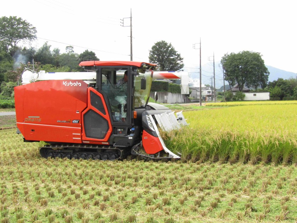 大きく育った稲が、どんどん機械に吸い込まれていきます!!うさぎ組さんも夢中で見学しています(*^▽^*)