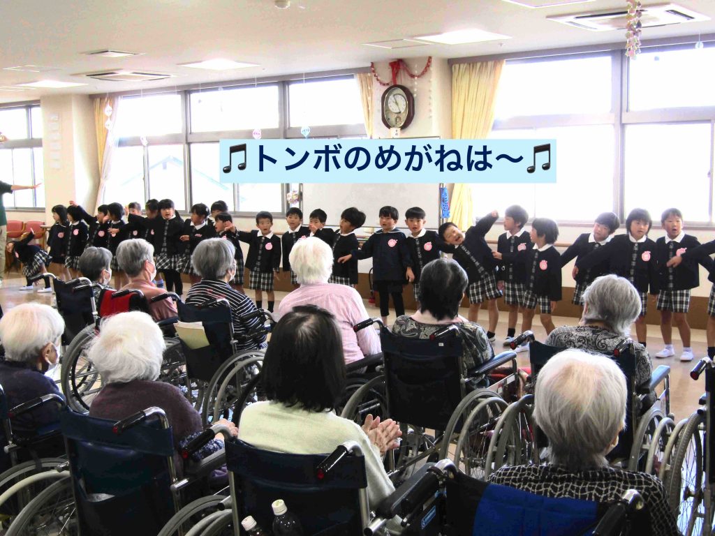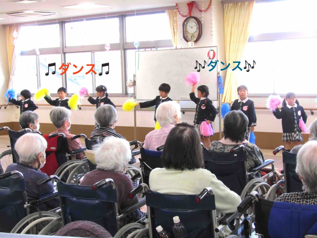 施設に入居しているおじいさん・おばあさんに歌やダンスを披露します。とっても喜んで見てくれています。
