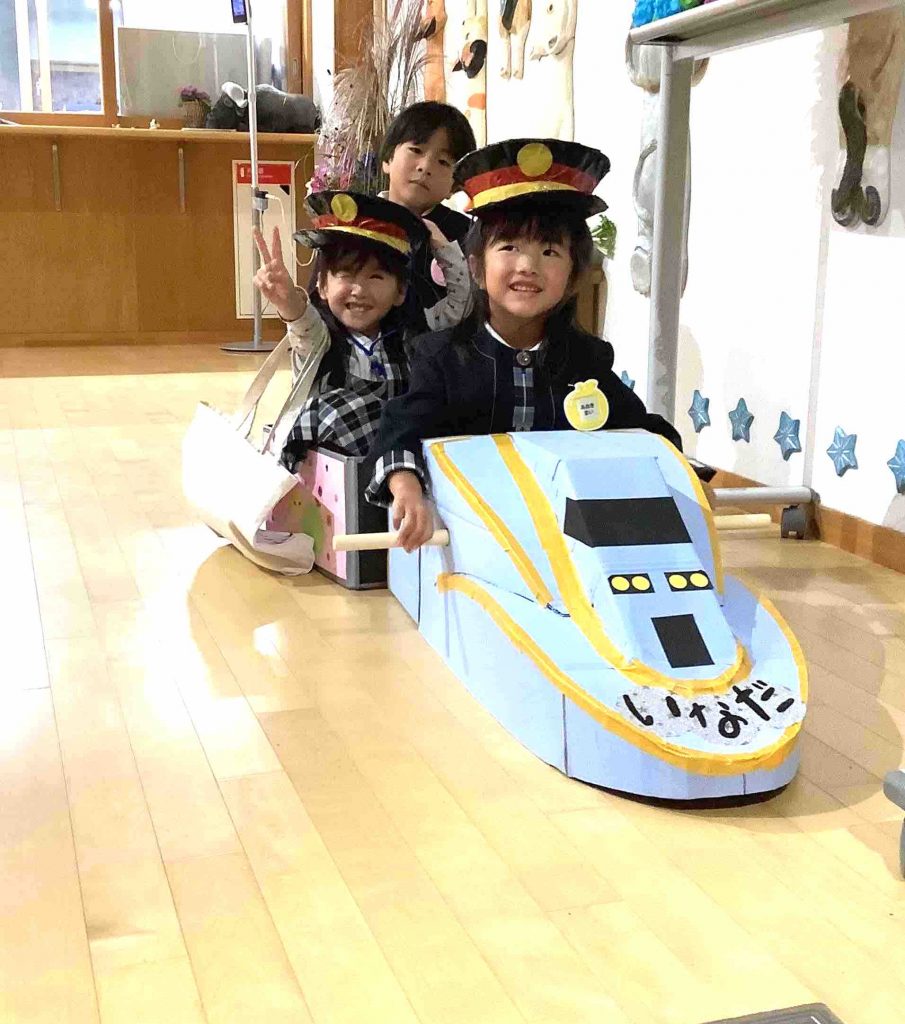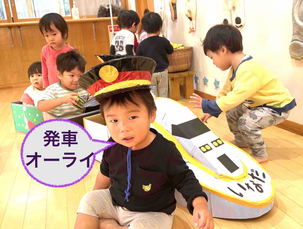 園に持ち帰るとたちまち子どもたちの人気者に!!いなだ列車発車しまーす!!