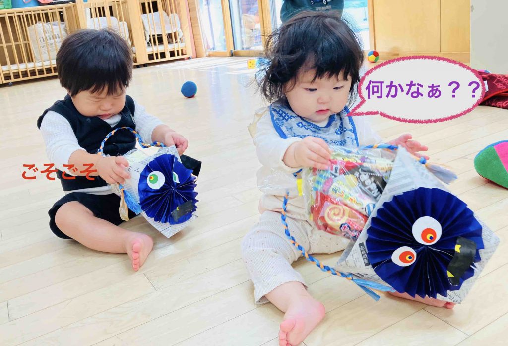 続いてぱんだ組🐼こあら組さん🐨  喜んでお菓子をもらっています😁