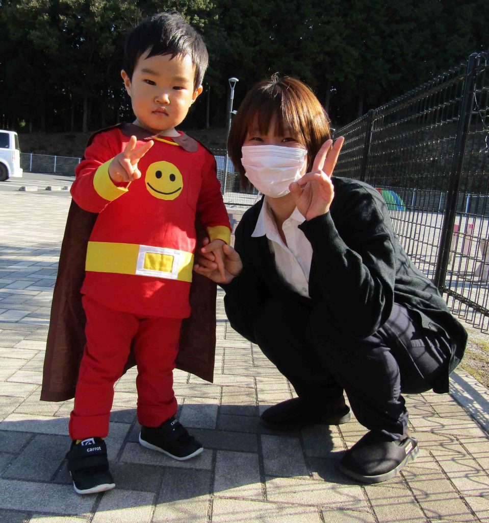 『おはようございま〜す!!』いつもと変わらない挨拶ですが、いつもと違うのは子どもたちの格好👗みんな色々なコスチュームを着て足取りも何だか軽そうですよ🎵