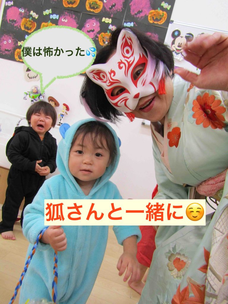 次はりす組🐿️キツネさんが怖いと泣く子、一緒に写真を撮る子と色々ですね☺️