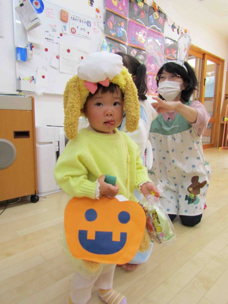 さてさて、可愛い子どもたちはどこにいるのかなぁ??まずはひよこ組🐣初めてのハロウィンでお菓子GET🍪