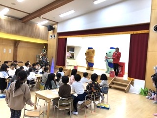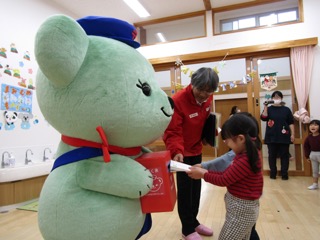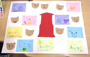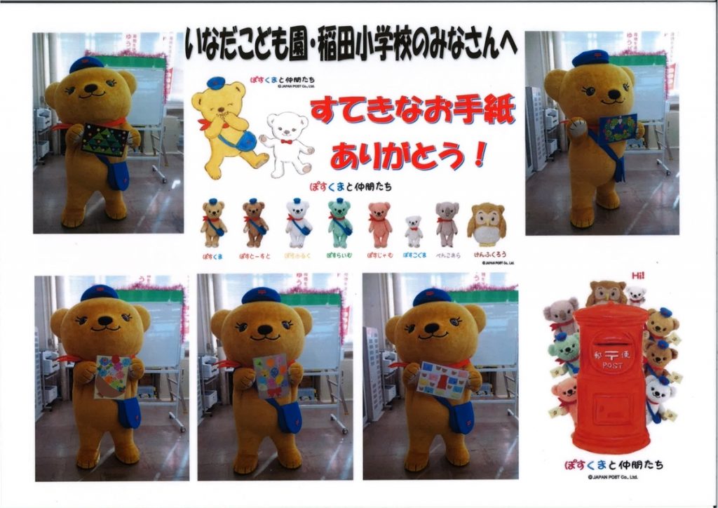 後日、ぽすくま君からこんな素敵なプレゼントをいただきました!!子どもたちからのお礼のお手紙を持ってくれた写真です!かわいいですね❤️