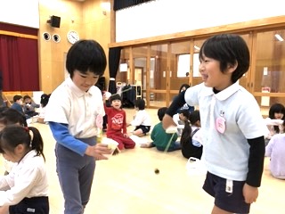 はじめは、1年生が生活科で作った手作りおもちゃで遊びます。