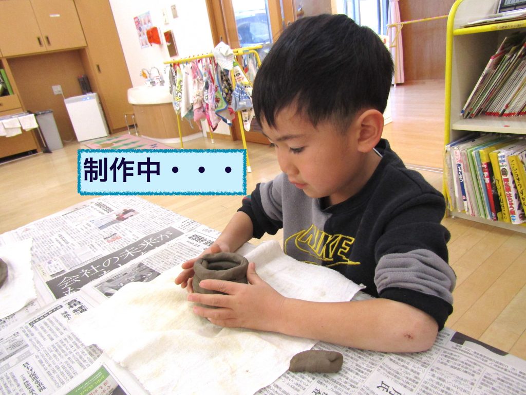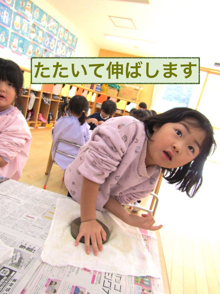 今日はぞう組さんの陶芸教室です。特別講師・奥田先生をお迎えして、作品作りをしました。笠間は陶芸の街。芸術家の卵が、今日誕生しようとしています!!