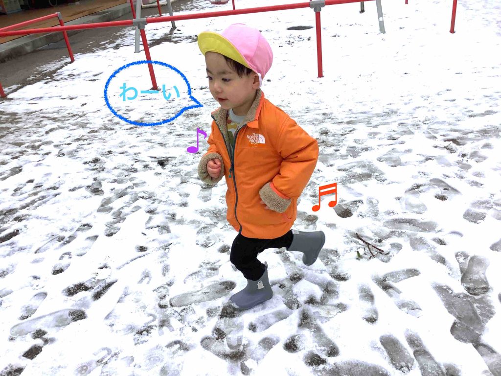 ひよこ・りす組のお友達も出てきました!!雪を踏むのもいつもとはちょっと違うみたい。とってもうれしそうですね😀