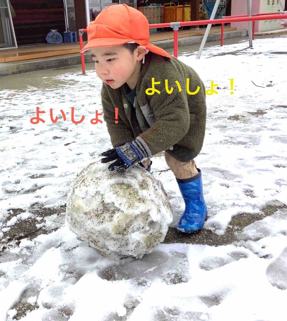 夢中で雪玉を転がして大きな大きな雪だるまを作ったのはうさぎ組さん🐰