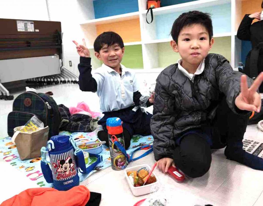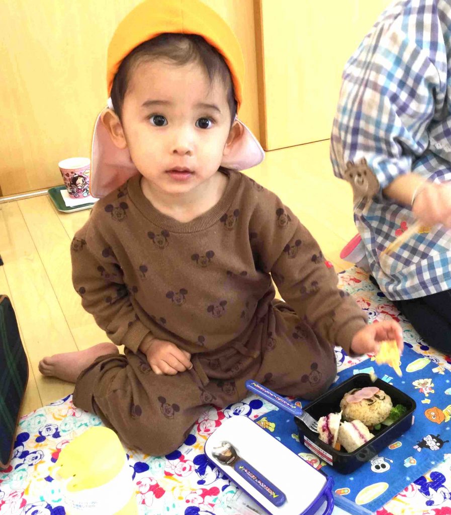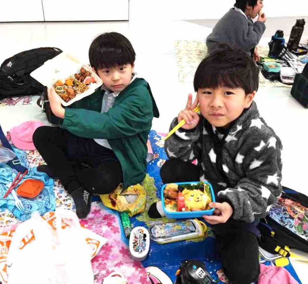 お弁当はホールでみんなで食べました!『みてぇ!!』と自慢のお弁当を見せ合っていました👀お友達のお弁当をのぞき込んで見ても、やっぱり自分のお弁当が一番☝️朝早くから愛情たっぷりお弁当♡ありがとうございました‼️