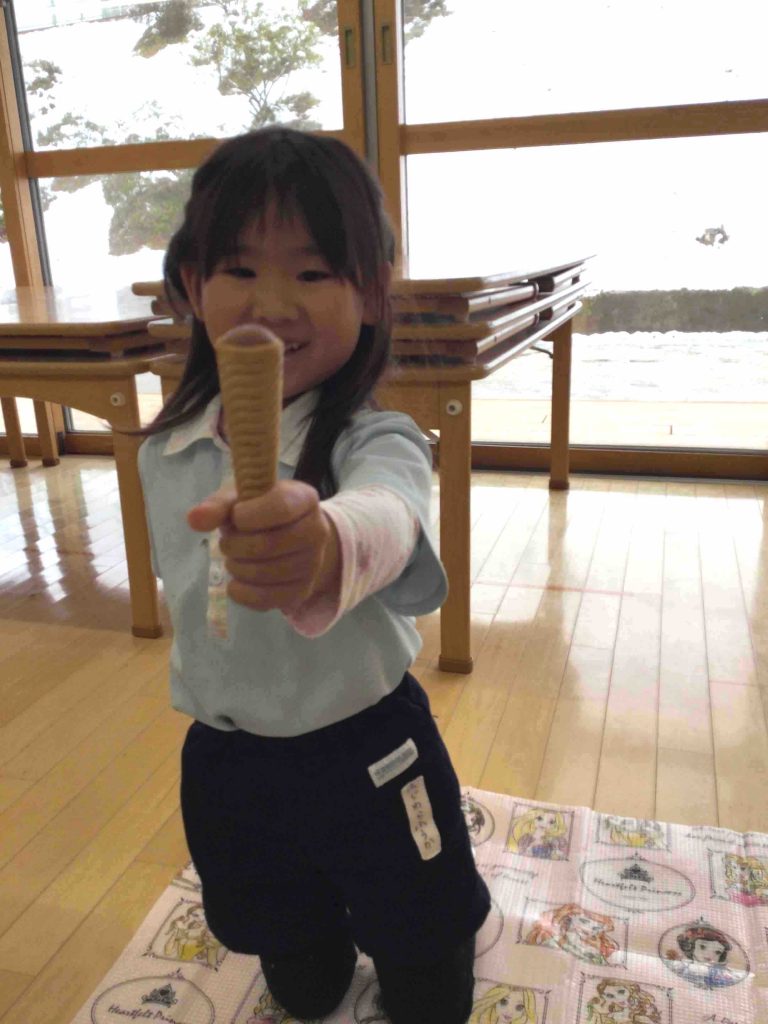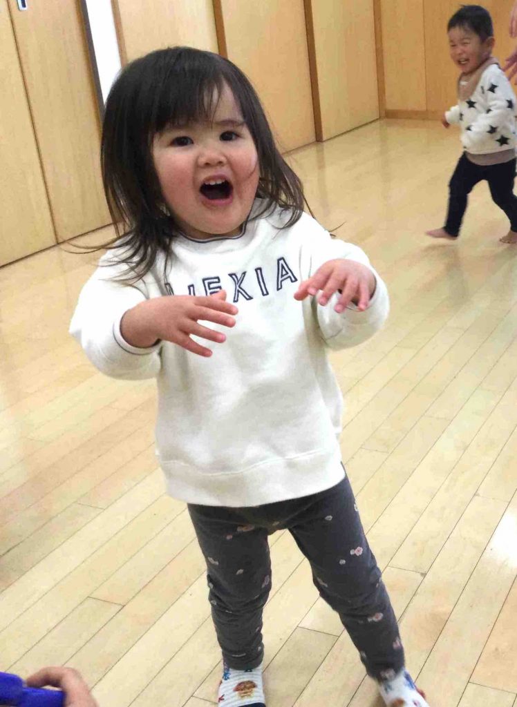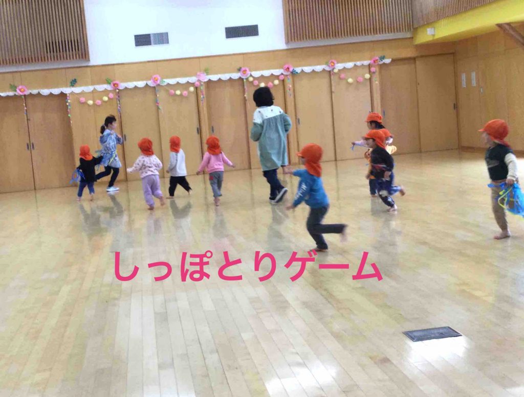 うさぎ組さんはホールでしっぽ取りゲーム!!いっぱい走ったらお腹すいたな・・・お待ちかね、おやつTIME🍪